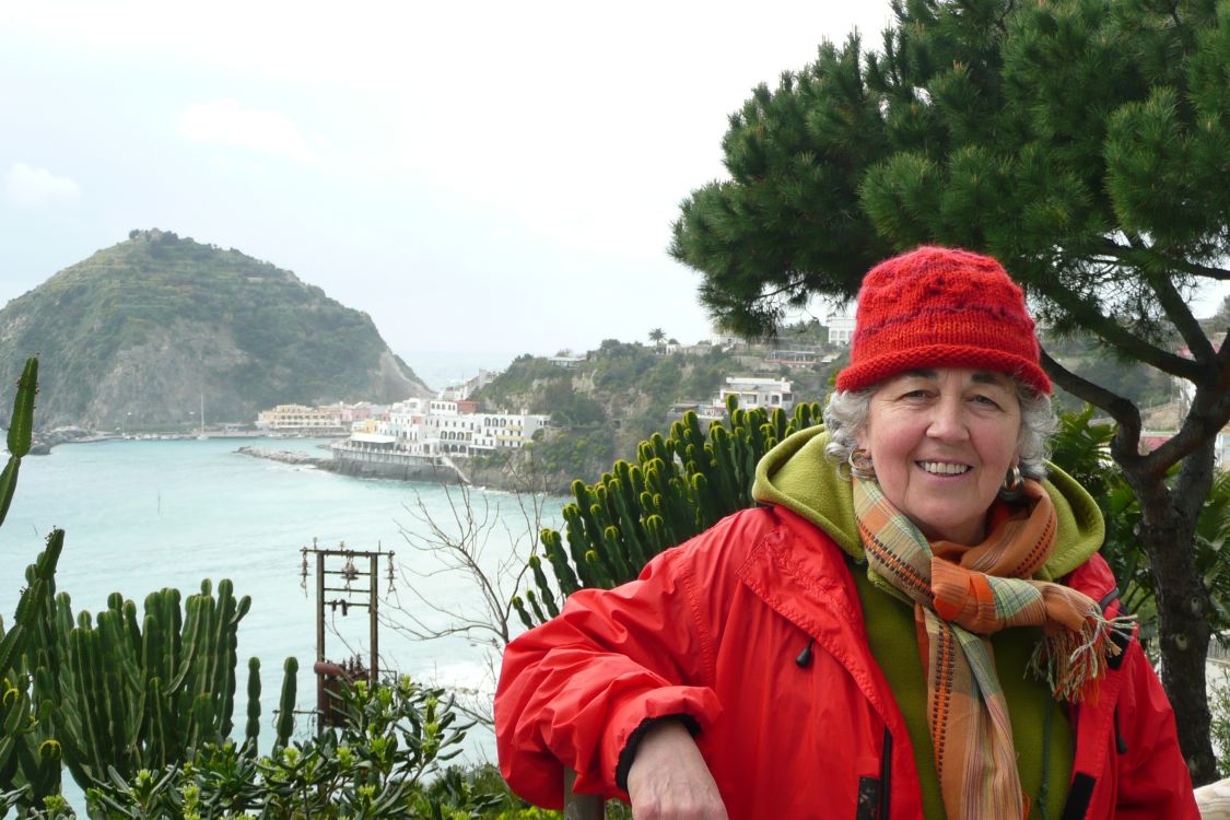 Sant AngeloMaria, Irmgard, Karin und Brigitte bei Sturm an der Bucht von Sant Angelo. |