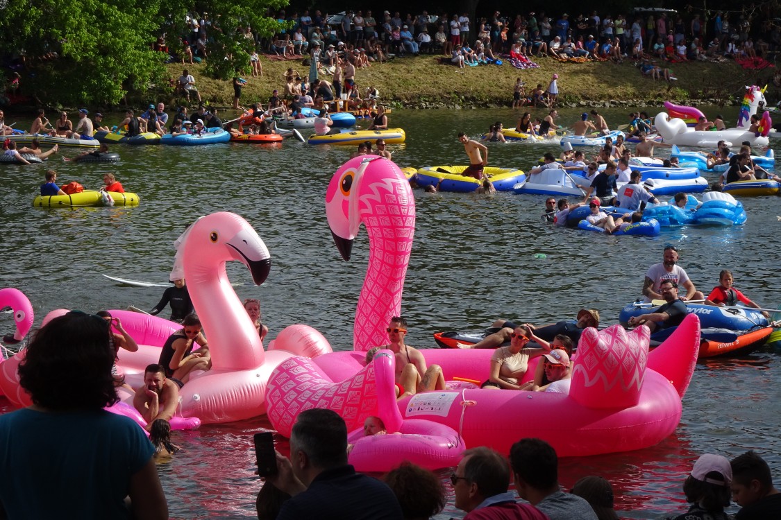 DonaurutscheViele Rutschen waren schwimmend unterwegs und boten für Akteure und Zuschauer Spaß. |