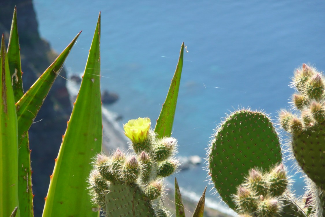 Kakteen MeerOpuntie an steiler Klippe oberhalb vom Meer. |
