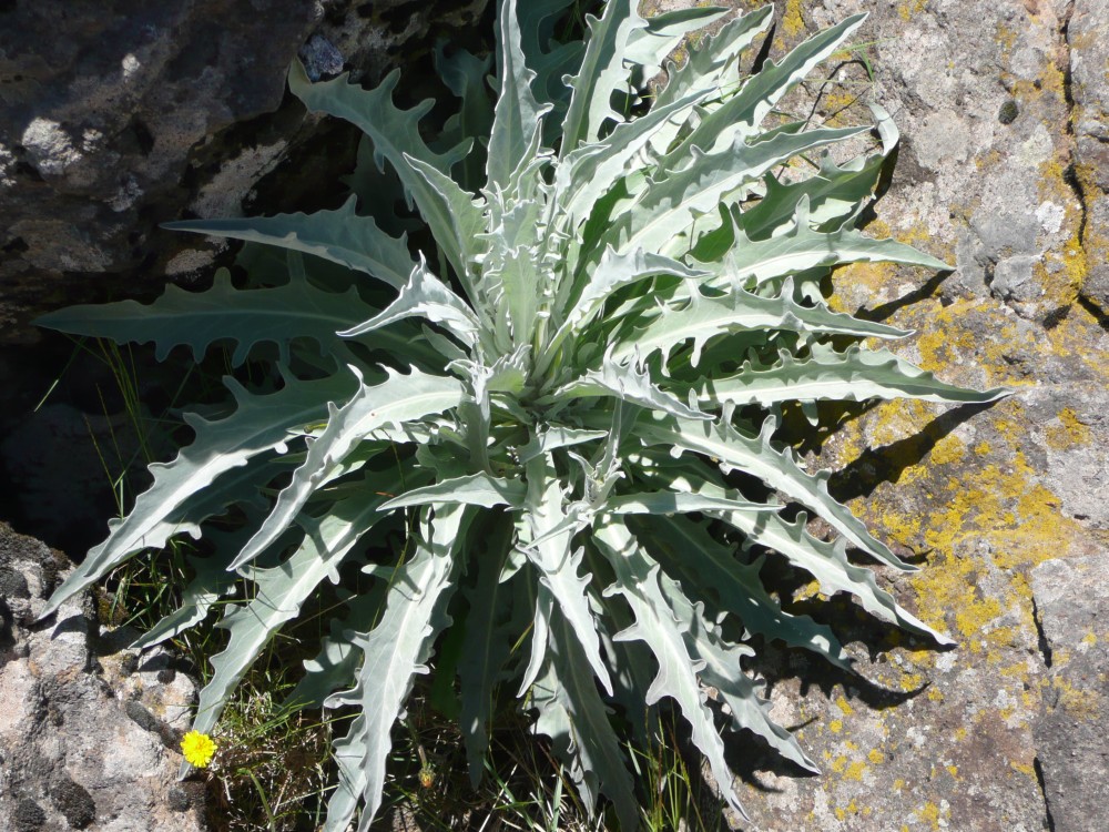 WolldistelDie Blüte der drüsigen Wolldistel ähnelt etwas dem Löwenzahn. Die Stengel und Blätter sind sehr klebrig - als Insektenfalle, zum Schutz vor Schädlingen. |