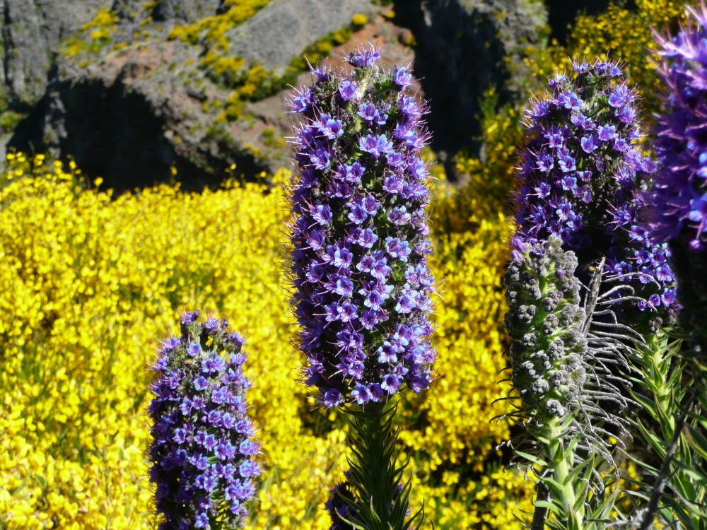 NatternkopfUm den Pico do Arieiro blühen Ginsterbüsche und vereinzelt auch der Stolz Madeiras (Madeira-Natternkopf, Echium candicans). |