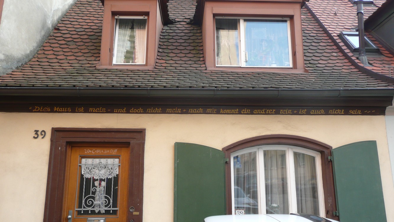 InschriftDies Haus ist meinund doch nicht mein nach mir kommt ein and'rer rein ist auch nicht sein |