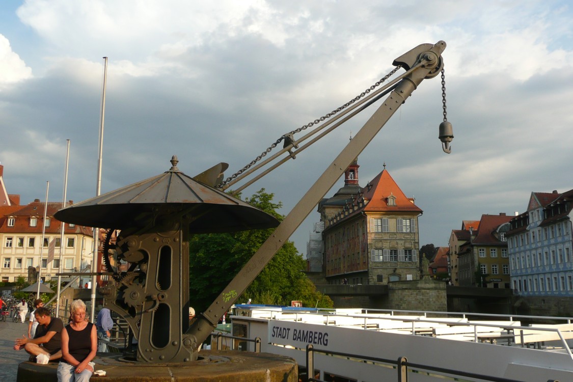 BambergAlter Lastkran in Bamberg am Main, am Schiffsanleger vor dem Alten Rathaus. |