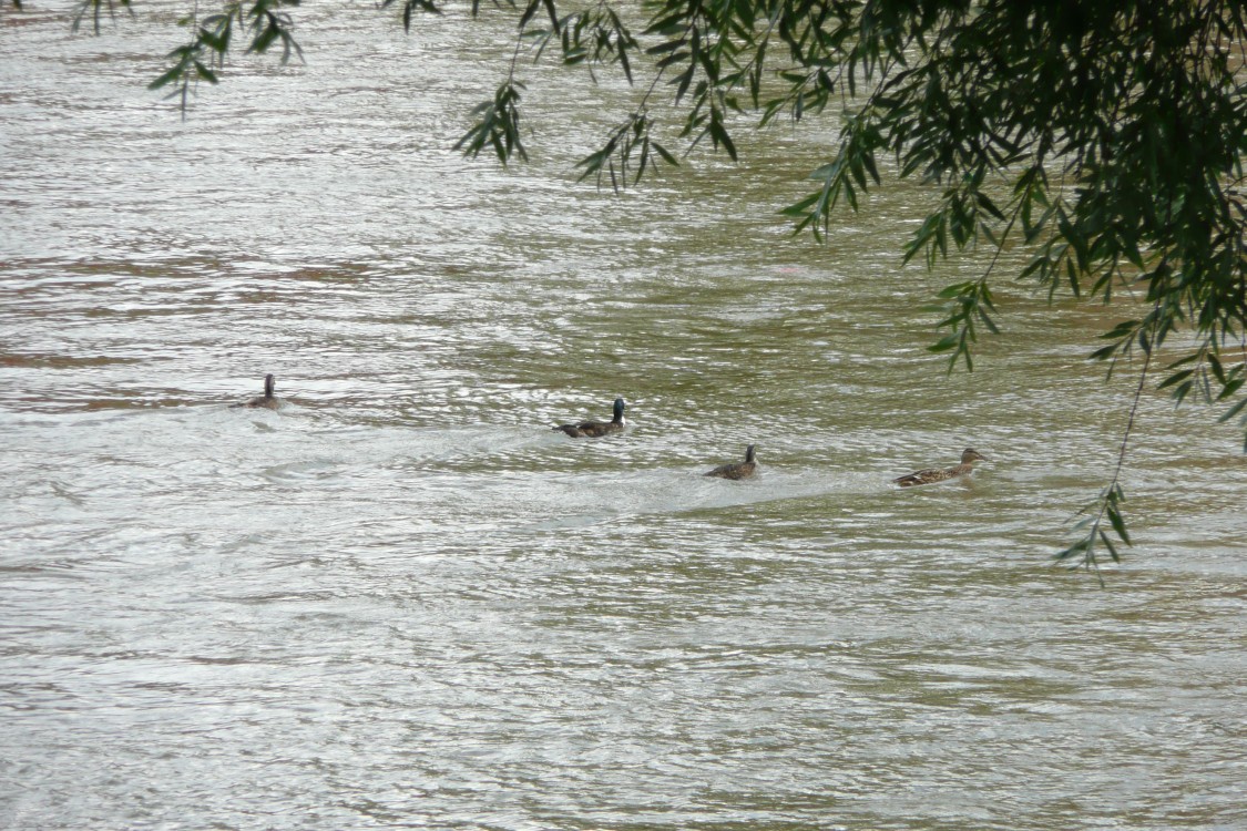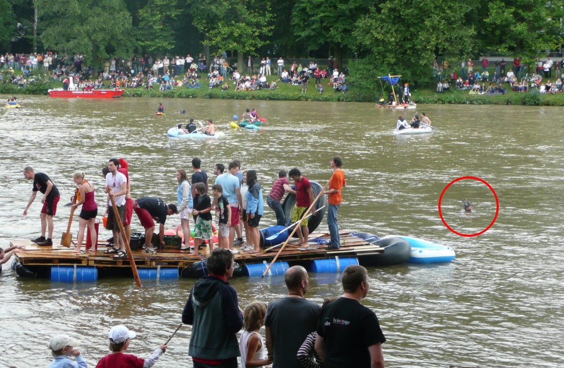 EntenDie Ulmer Enten hatten sich wieder vor den wilden Nabadern in Sicherheit gebracht und kehren zurück: "Endlich gehört die Donau wieder uns". Zu Beginn des Nabadens versuchen sie dem Spektakel zu entkommen - wie beim Beginn Nabada 2004 mit Enten im Gegenverkehr. |