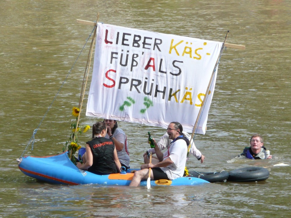 FinanzkriseFinanzkrise riesa Schadaaber heit demmr Nabada. - Selbst kleine private Boote haben flotte Sprüche parat. |