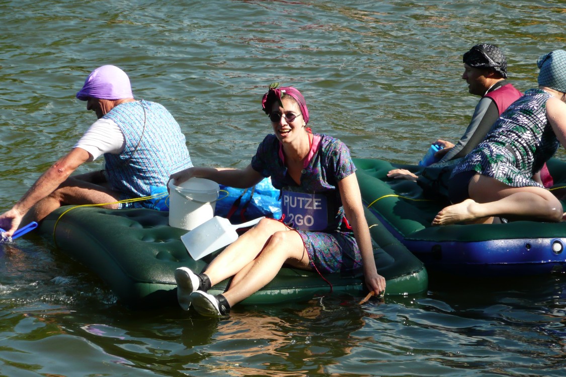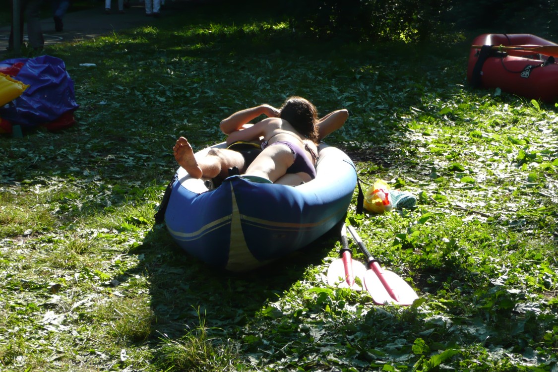 PutzedeNach dem Nabada muss alles wieder abgebaut, gereinigt und verpackt werden. Die durchnässten Teilnehmer genießen die Sonnenstrahlen um sich aufzuwärmen. |