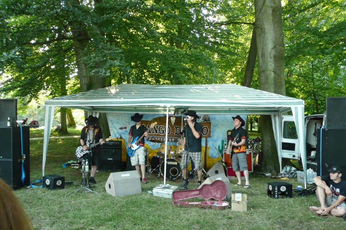 Rango DangoDiese junge Rockband hat schon ab 15 Uhr die Zuschauer und anschließend ihre Nabader-Fans fleißig unterhalten. Was 2003 als Spaß aus Langeweile begann, ist mittlerweile Tradition: Rango Dango spielen auch dieses Jahr wieder am Donauufer zum Schwörmontag auf. In der Nähe des SSV Bads auf der grünen Wiese "Am Gänswieseweg" geben die fünf Langenauer Cowboys ihre skurrile Country-Trash-Show zum Besten. |