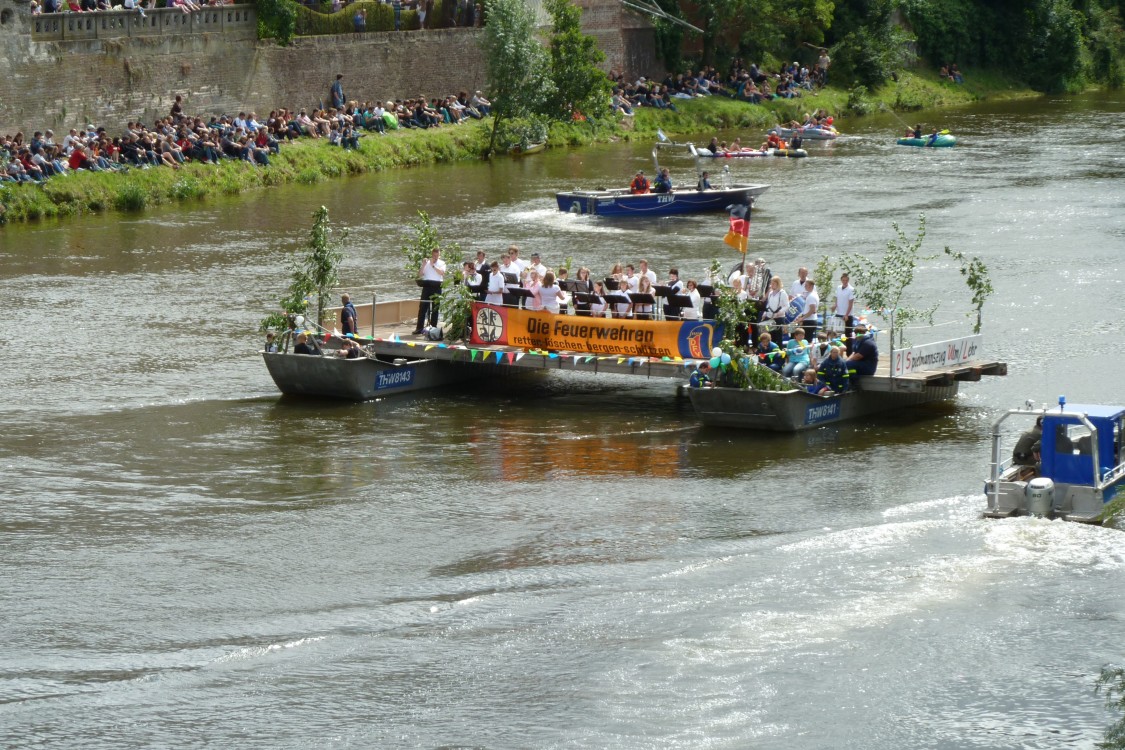 Spielmannszug LehrMit dazu gehört Musik ... Diese schwimmende Bühne des Spielmannszug Lehr, der gut und kräftig die Zuschauer unterhalten hat, passt kaum mehr unter den Begriff Musikboot. |