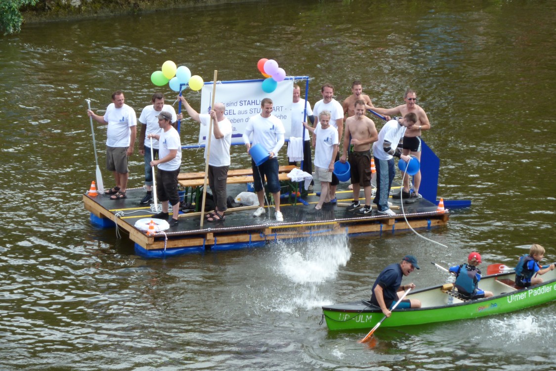 StuttgarterGäste aus nah und fern ... Wir sind STAHLharte ENGEL aus Stuttgart und lieben das FRIEDliche Nabada. Friedlich? Na na - diese Stuttgarter machen die Ulmer Paddler ziemlich heftig naß. |