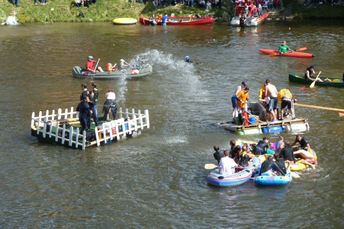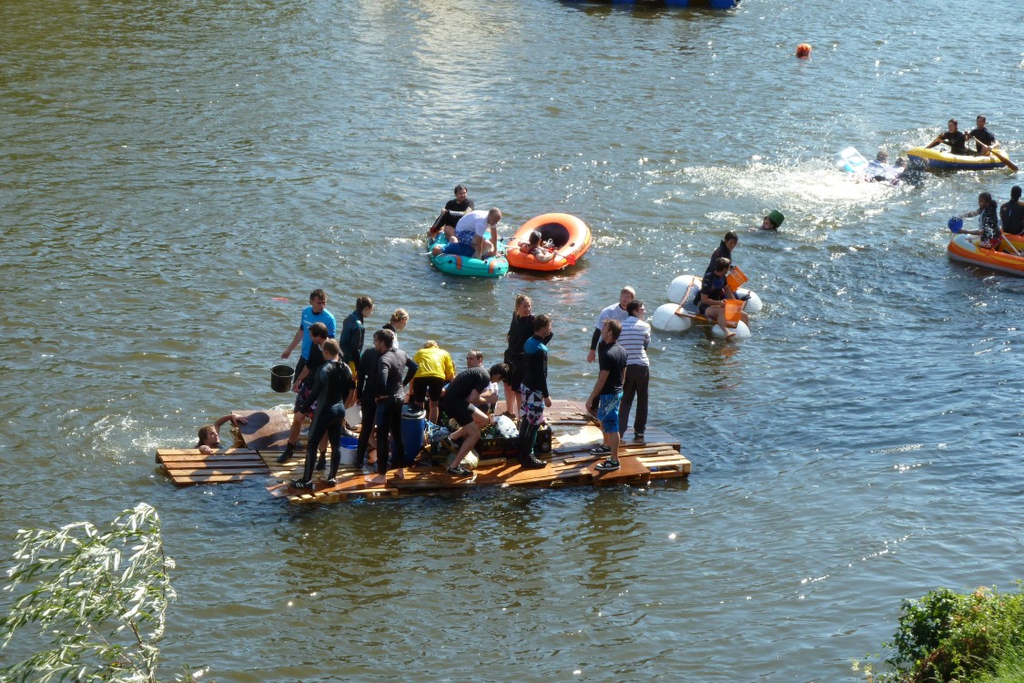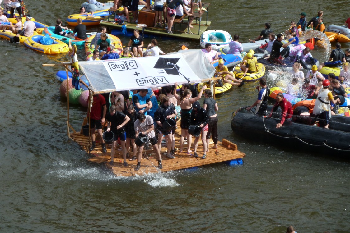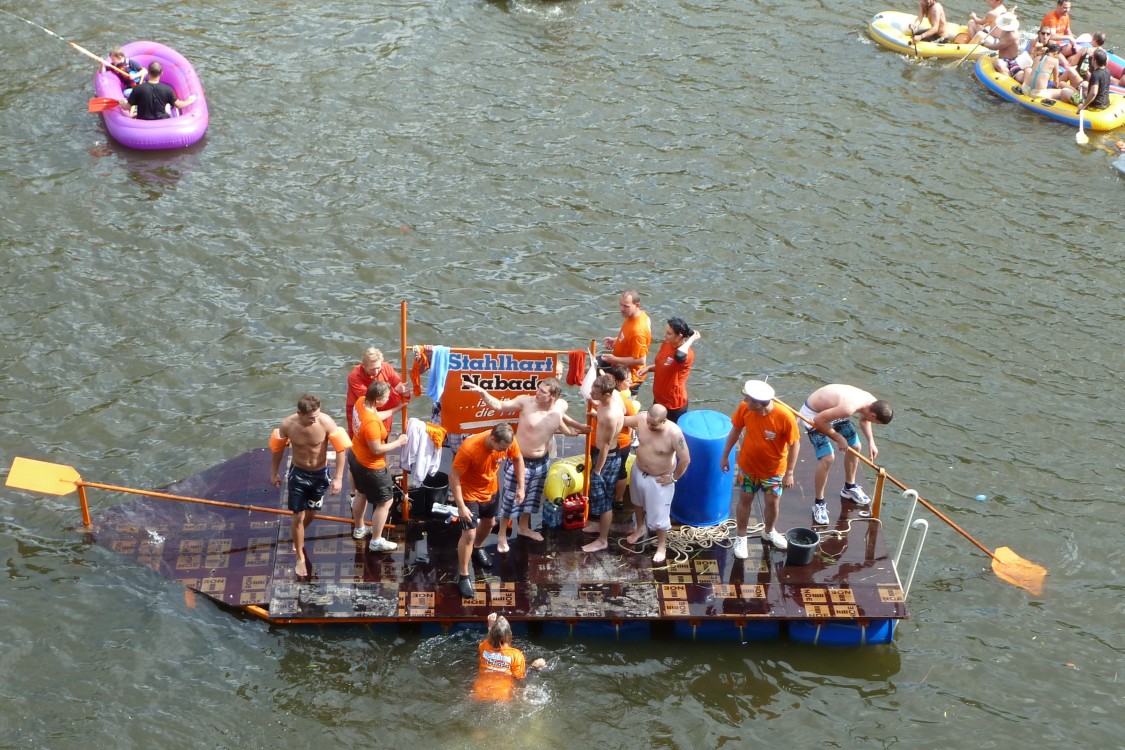 stahlhart NabadaStahlhart und unerschrocken stellen sich diese Nabader der Wasserschlacht. Das Floß hält sich knapp über Wasser. |