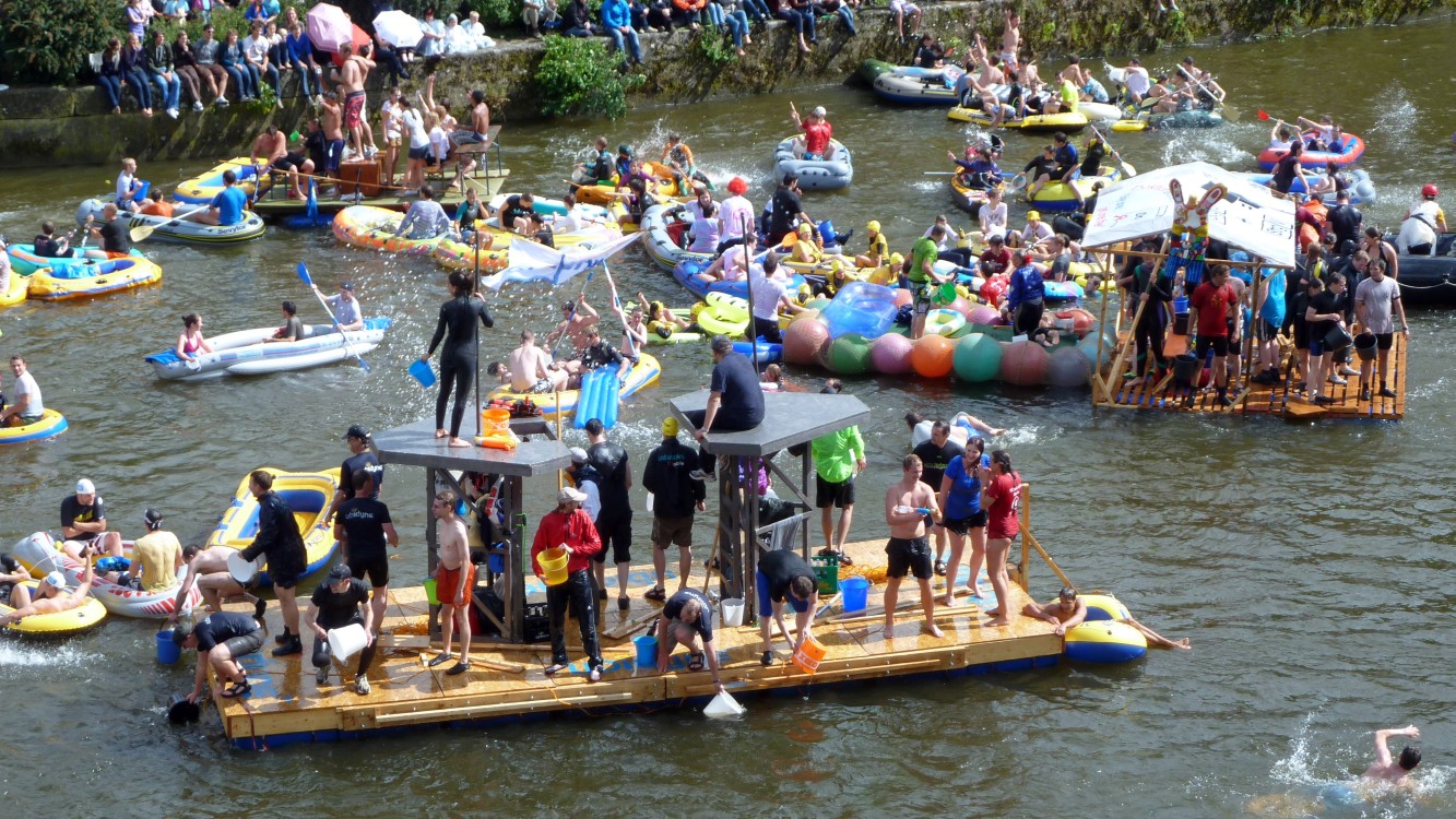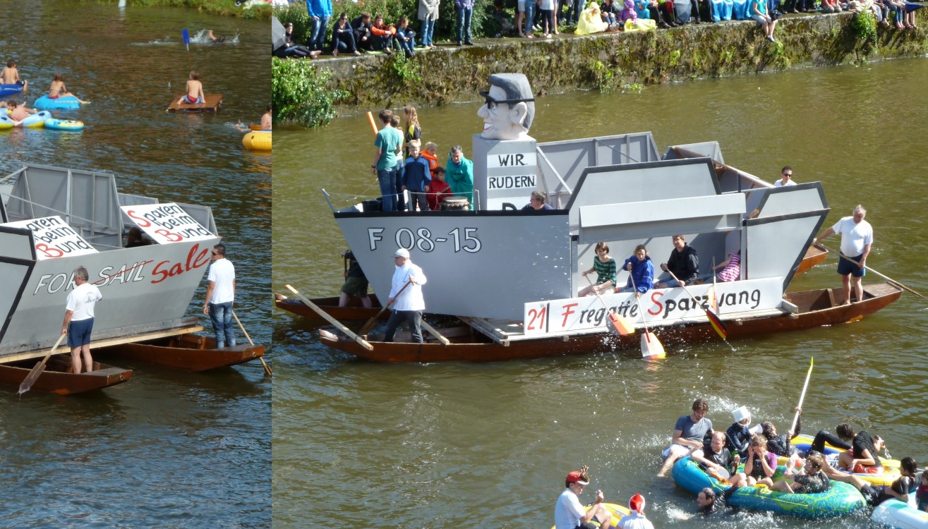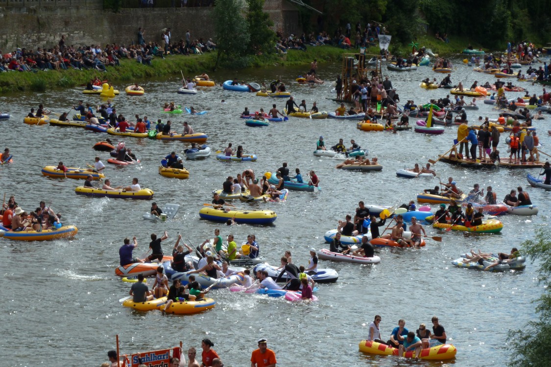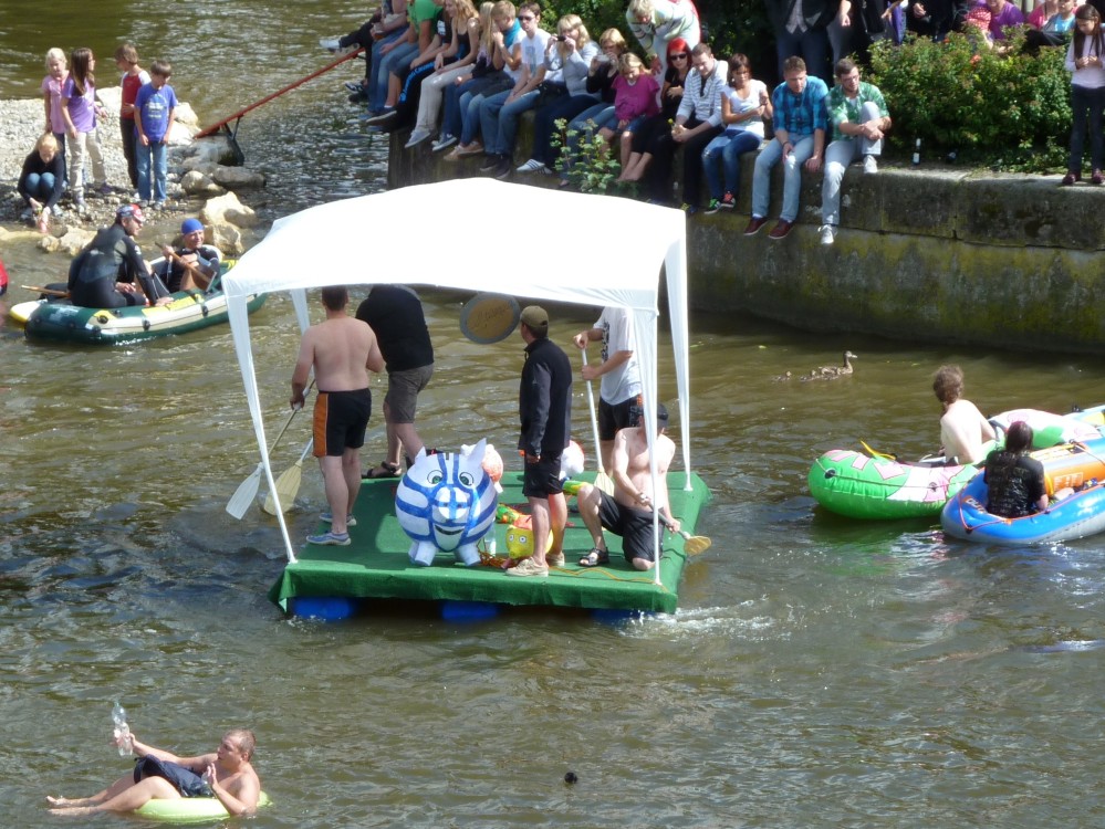 stahlhart NabadaStahlhart und unerschrocken stellen sich diese Nabader der Wasserschlacht. Das Floß hält sich knapp über Wasser. |