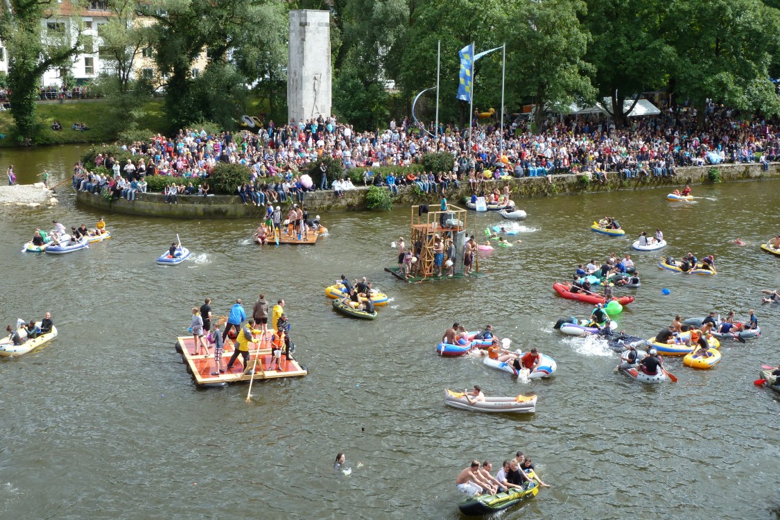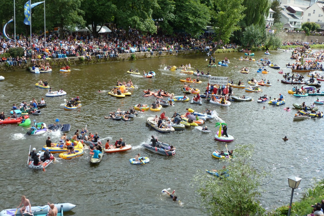 Nach alter Tradition wird in Ulm am Schwörmontag, dem dritten Montag im Juli, das Nabada, der lokale "Nationalfeiertag", ausgiebig gefeiert.