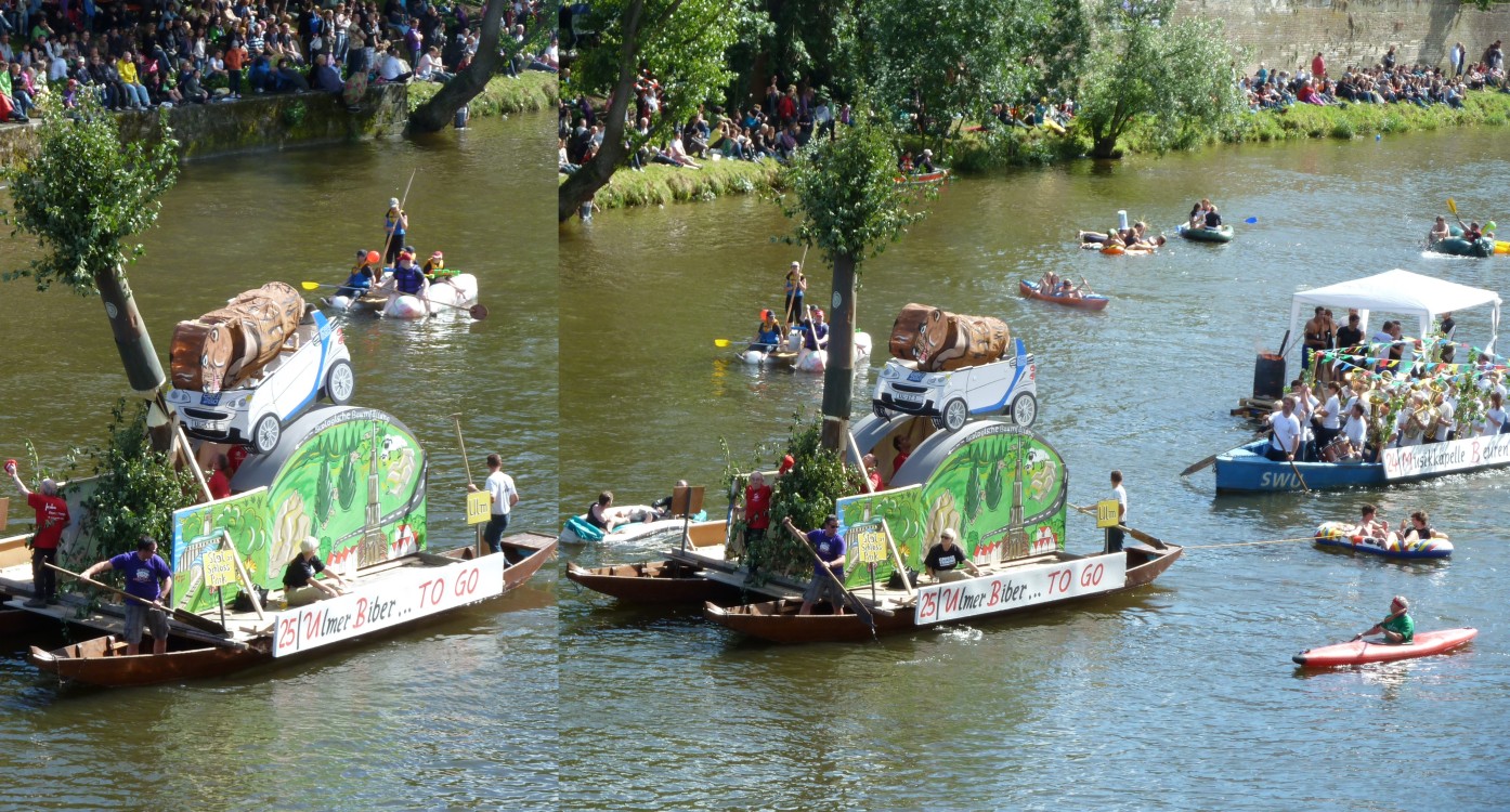AusklangDas Nabada neigt sich dem Ende zu - die Nachzügler ...Zum Ausklang hat sich das Wetter gebessert - die Sonne scheint, keine Regengefahr. Da wird nichts mehr die Ulmer Feierlaune bremsen. |