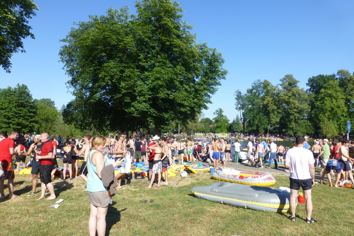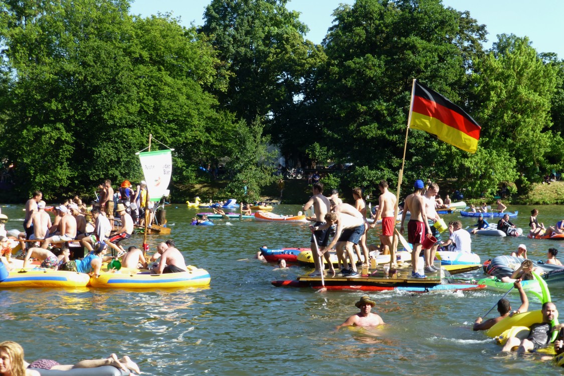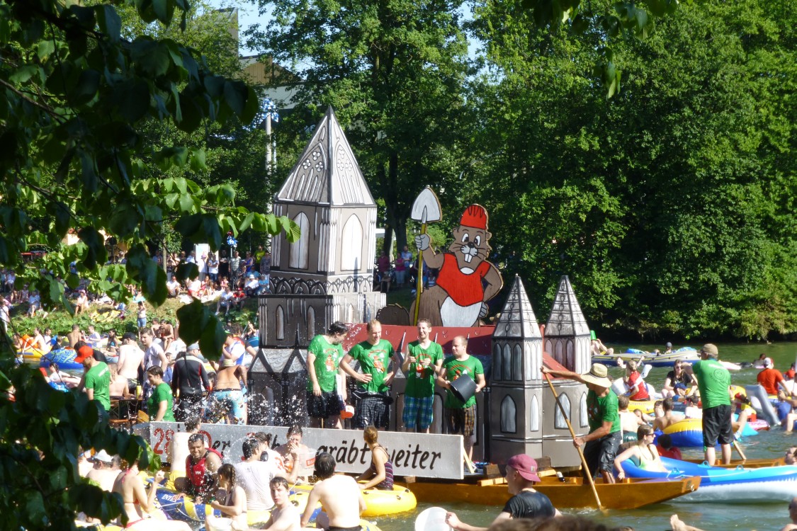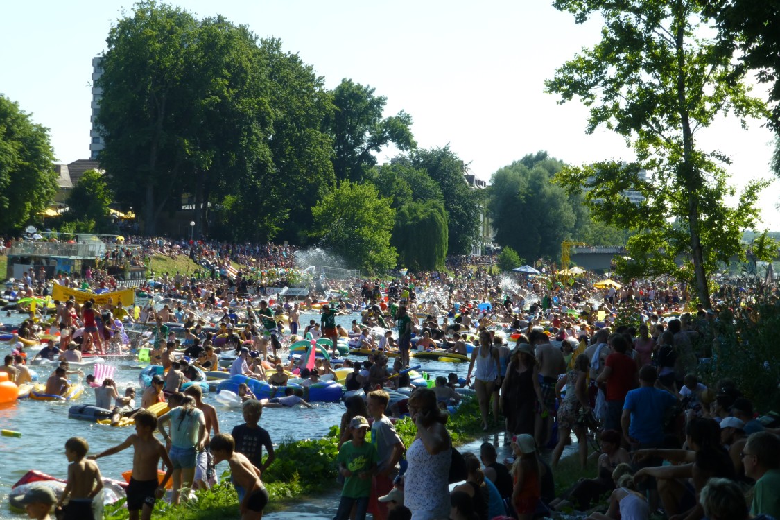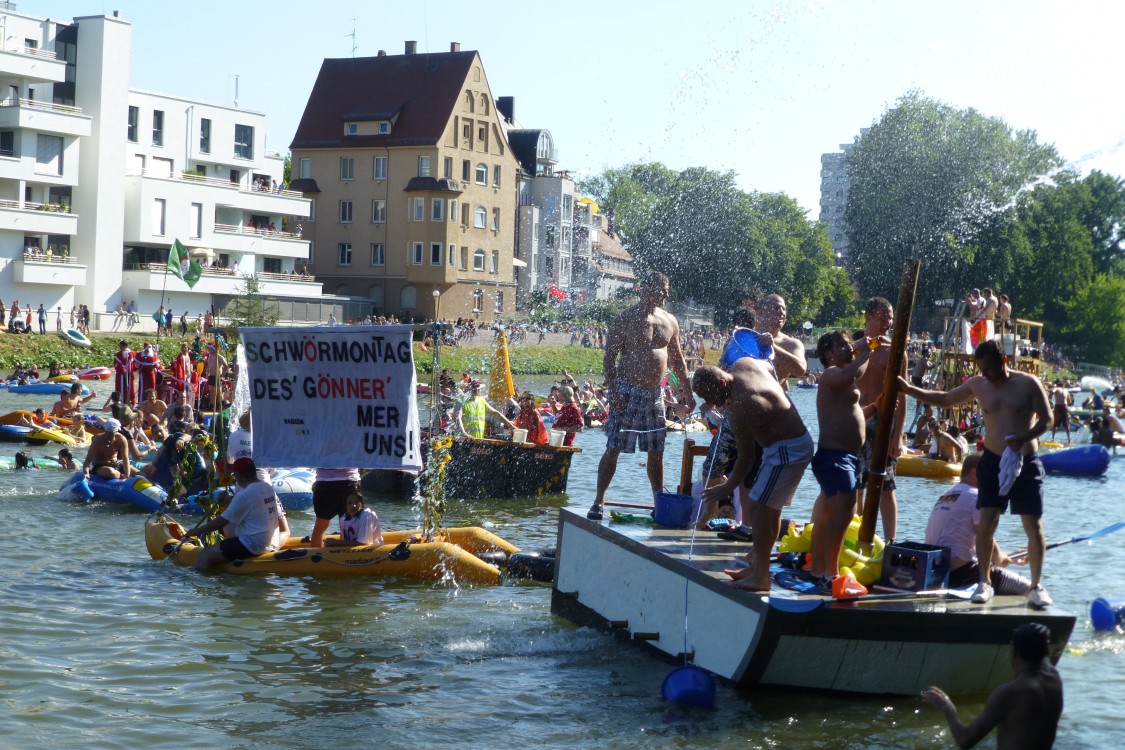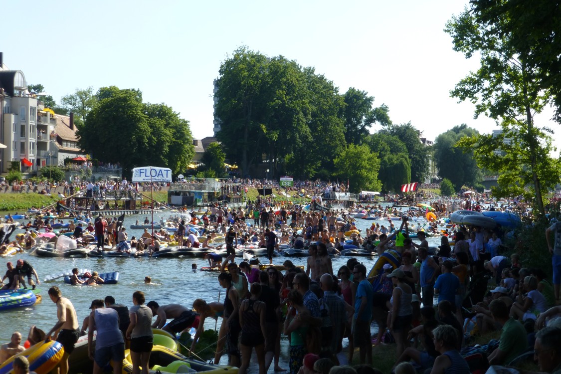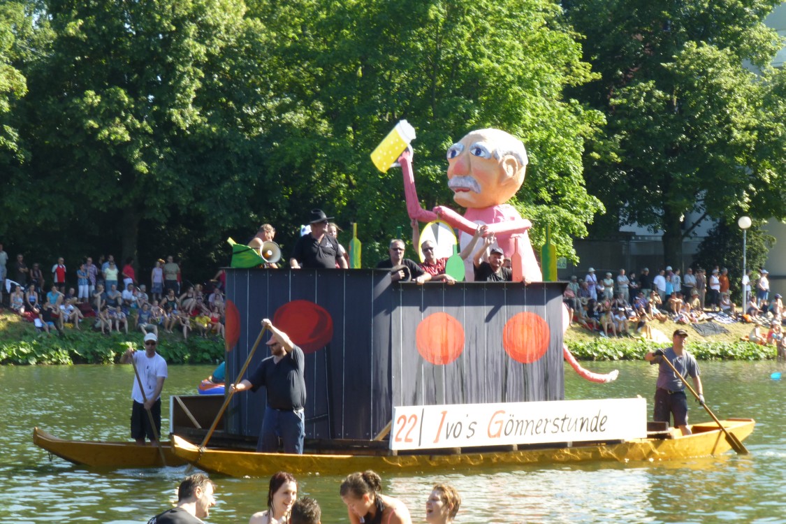 FloatDie ufernahen Plätze sind triefend nass. Die ersten Zuschauer ziehen gen Friedrichsau - zur Livemusik und in die Biergärten. |