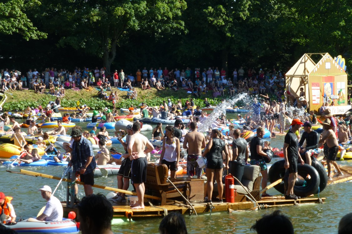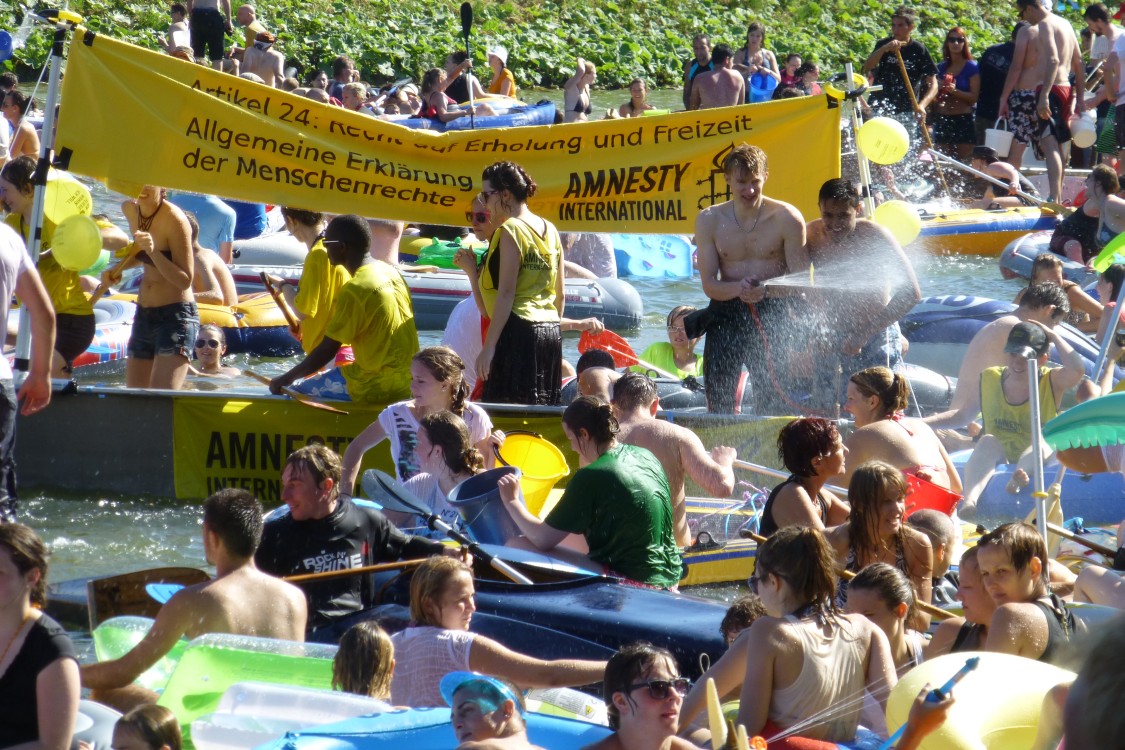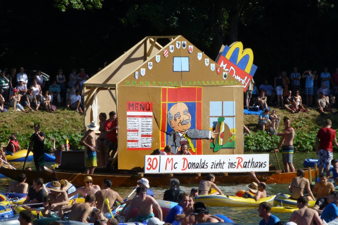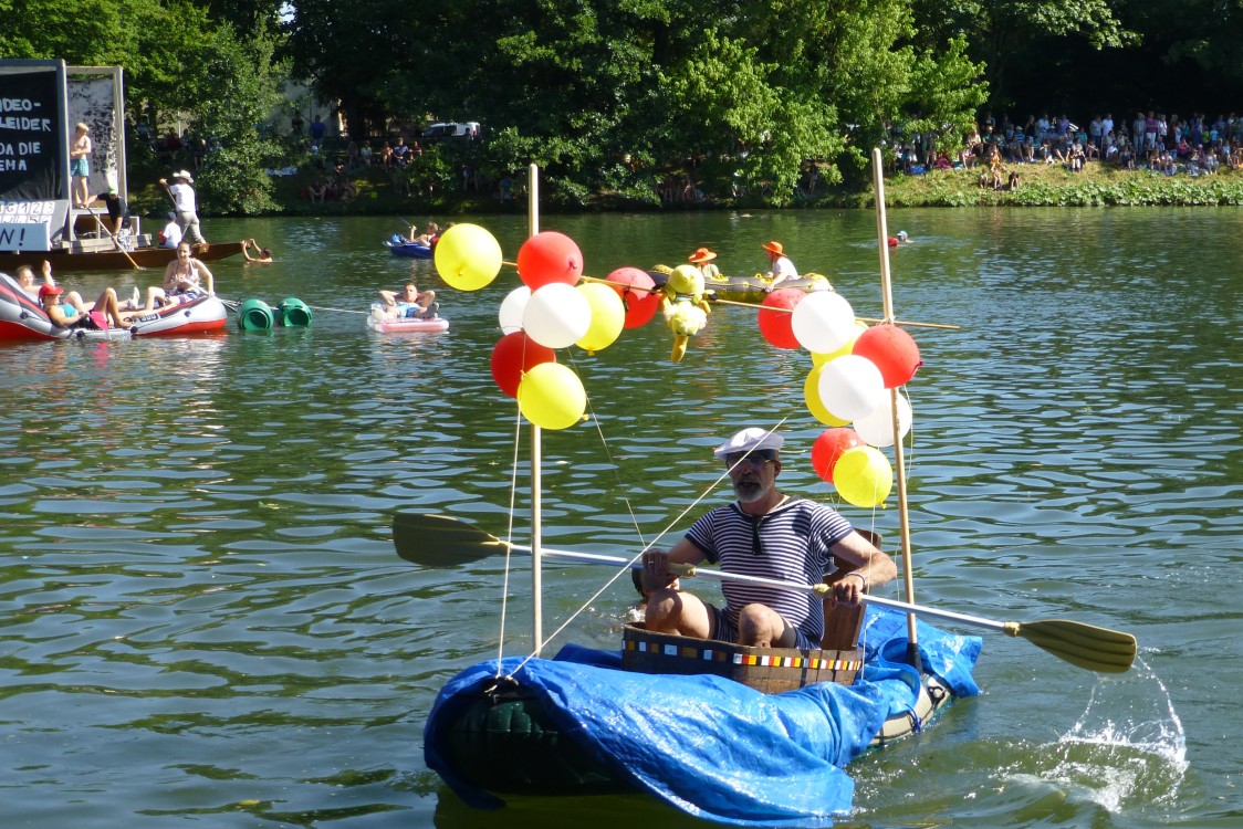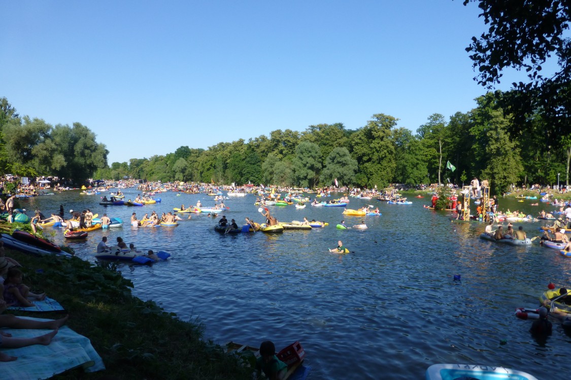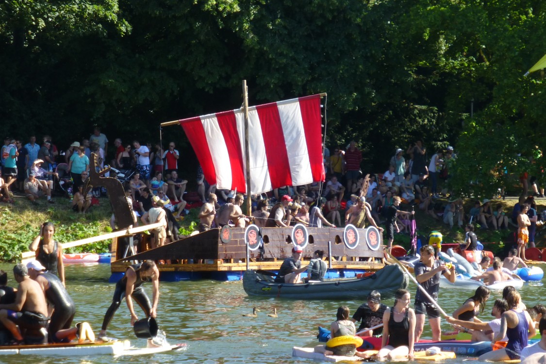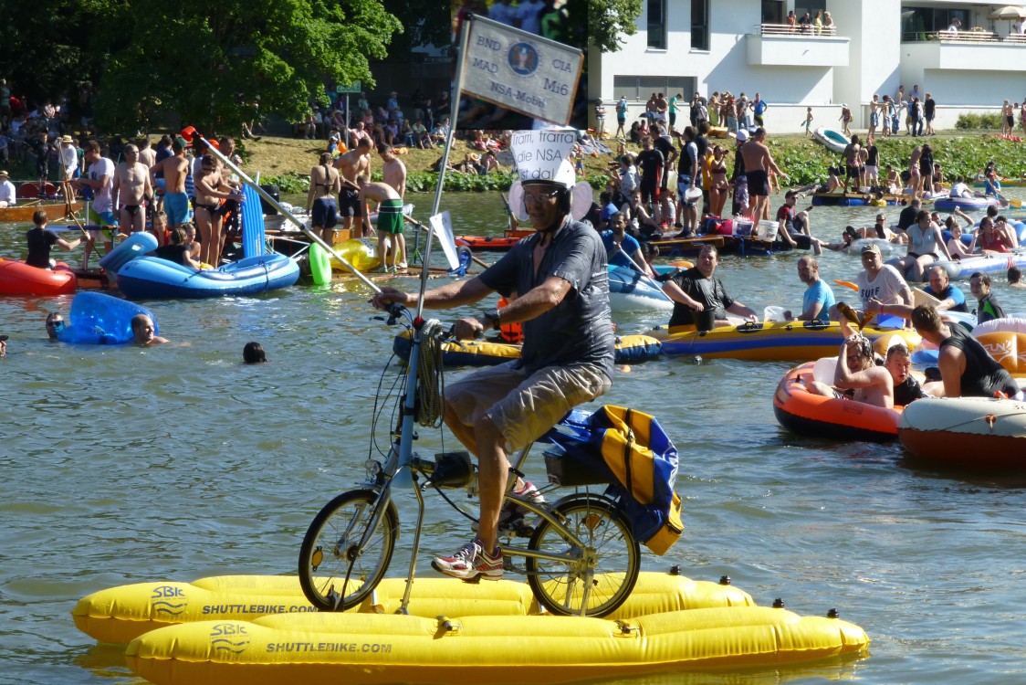 FloatDie ufernahen Plätze sind triefend nass. Die ersten Zuschauer ziehen gen Friedrichsau - zur Livemusik und in die Biergärten. |