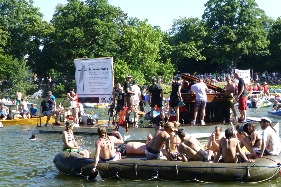 Nach alter Tradition wird in Ulm am Schwörmontag, dem vorletzten Montag im Juli, das Nabada, der lokale "Nationalfeiertag", ausgiebig gefeiert.