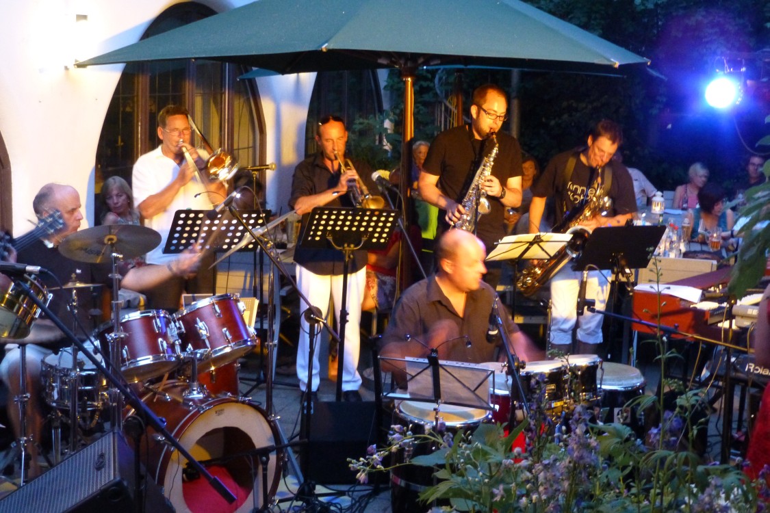 Livemusik in der StadtViele Ulmer Gastronomen lassen zur Freude des Publikums Livebands aufspielen. Hier erfreut Sweet Brazil mit Jazz im Garten des Cafe im Kornhauskeller. |