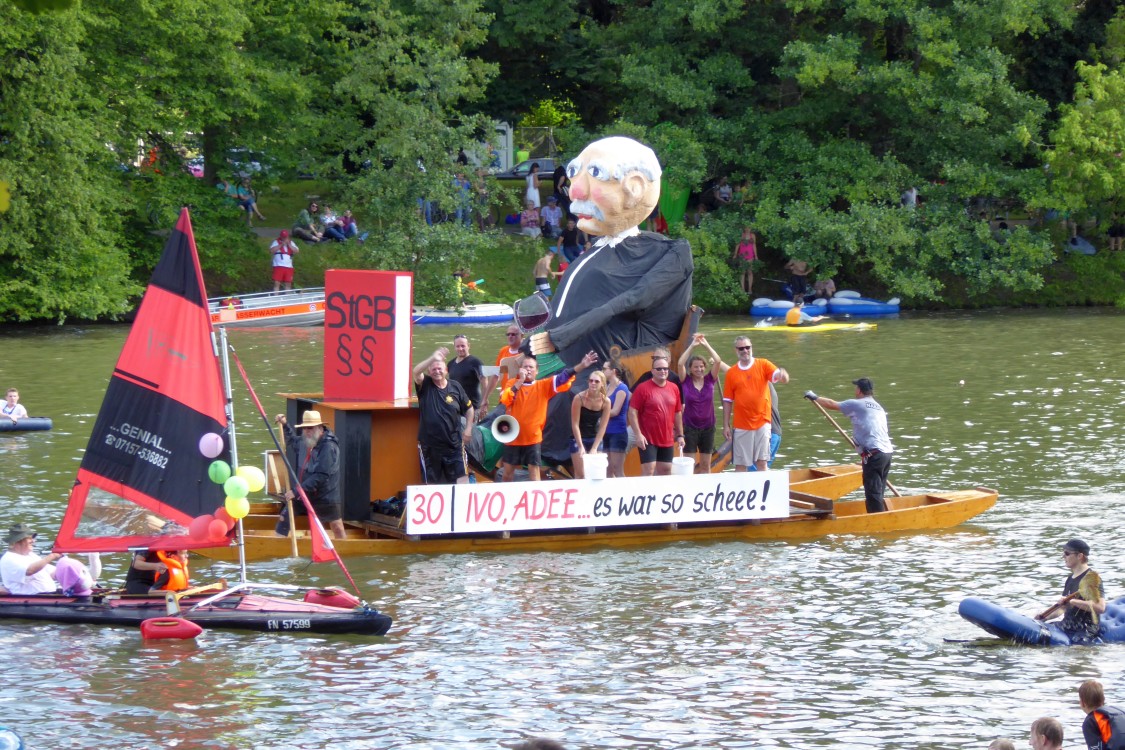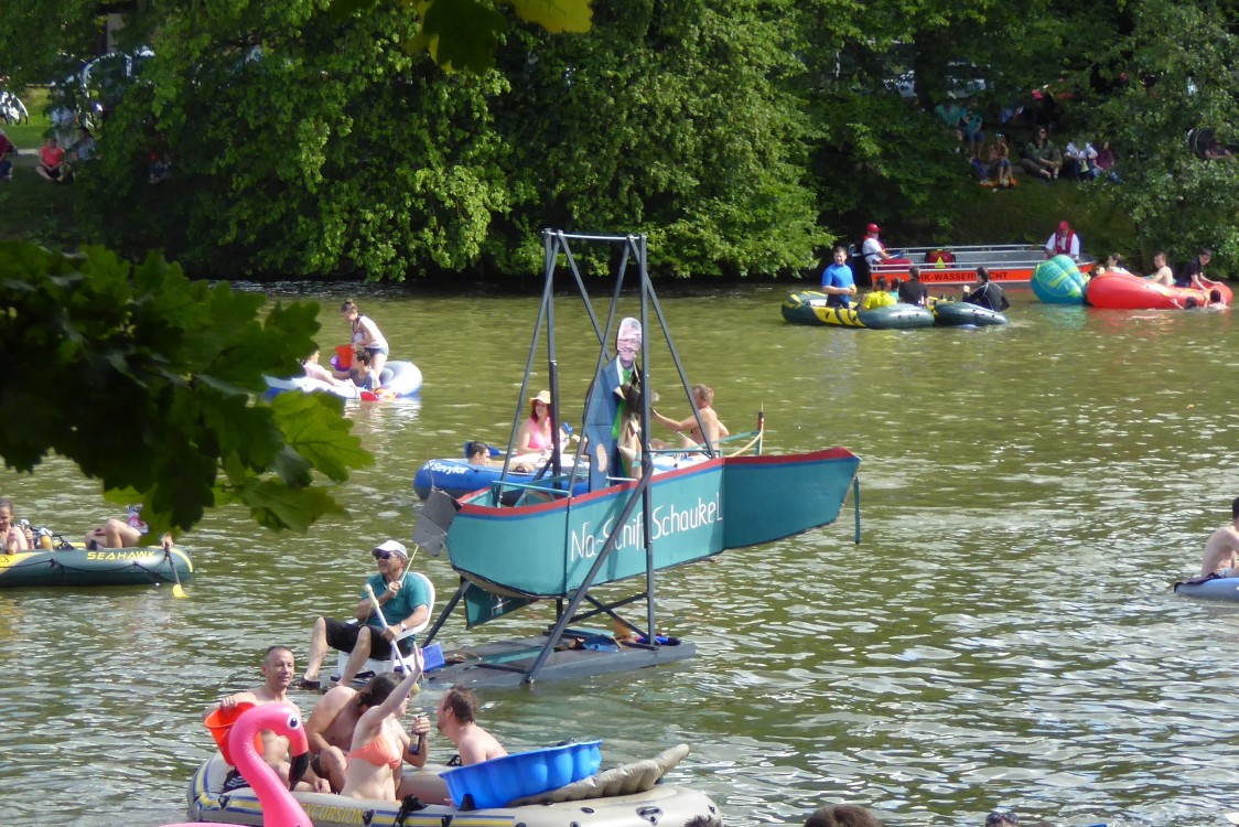NabadaDa fahren sie hin ... die Nabader. Dieses Jahr waren sehr viele Gummiboote dabei. Der kalte Juli hat vermutlich ein paar Akteure abgeschreckt. |