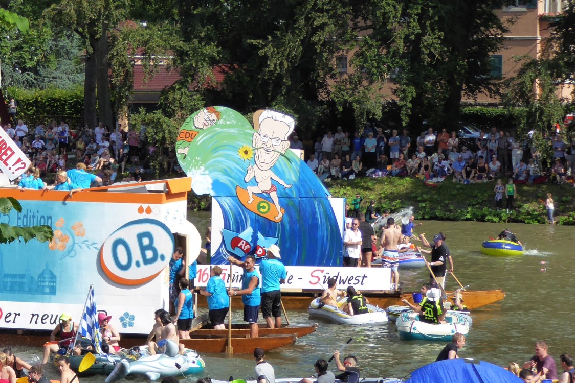 Nach alter Tradition wird in Ulm am Schwörmontag, dem vorletzten Montag im Juli, das Nabada, der lokale "Nationalfeiertag", ausgiebig gefeiert.