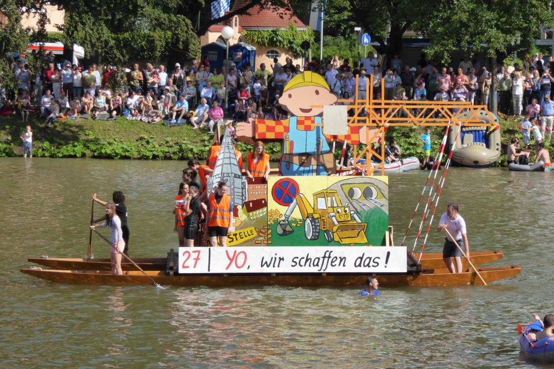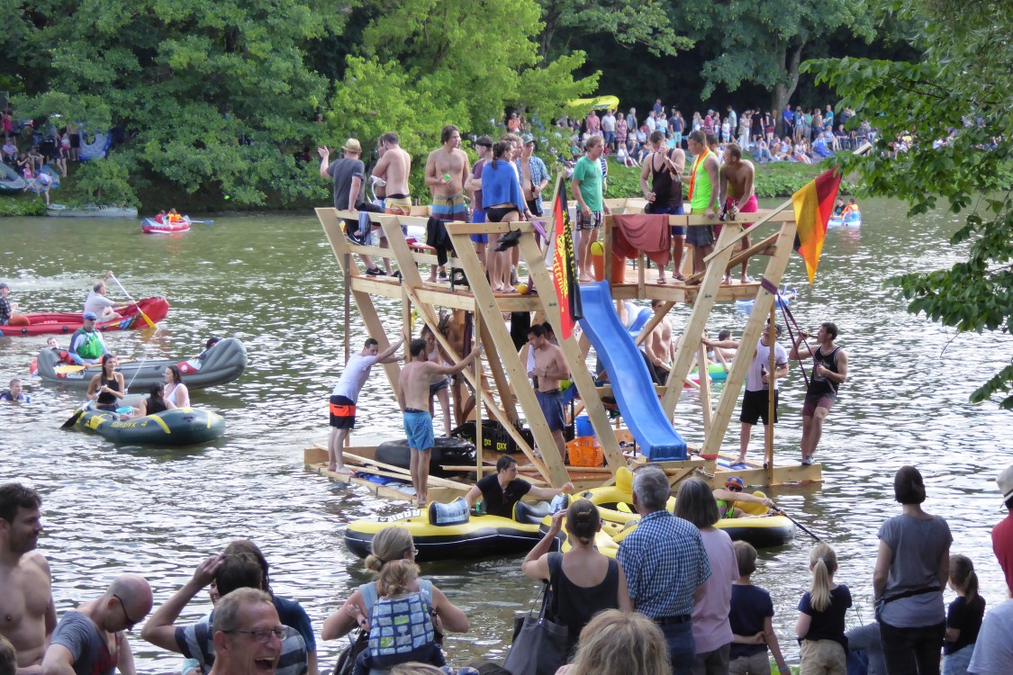 HochbauBeachtlich, welch große Konstruktionen manche Nabader stabil zum schwimmen bringen. Und ... die Rutsche darf nicht fehlen. Das könnte nach dem Nabada in einem Kindergarten noch Freude machen. |