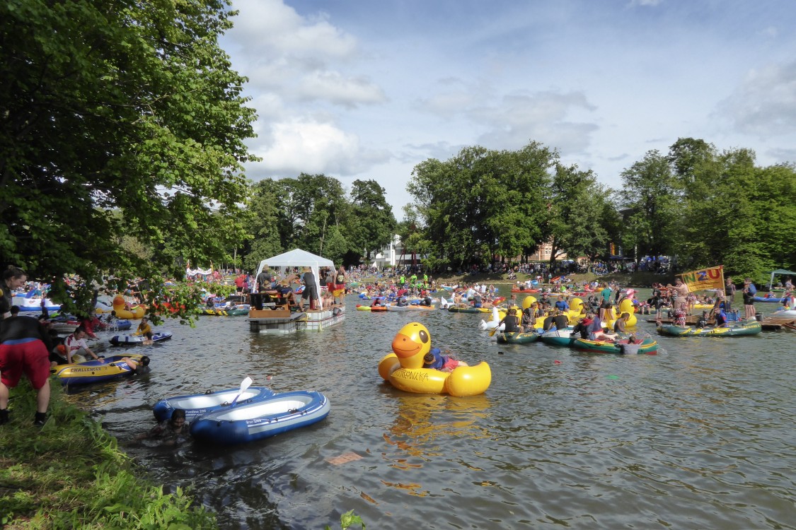 Dieses Jahr kam die Sonne genau passend zum Beginn heraus und wärmte die Nabader in der 19 Grad kalten Donau. Die Weltpolitik und Lokalpolitik steuerten genügend Ideen für die Mottofähren bei. Auf dem Wasser gab's wieder viele wilde Nabader. Lassen Sie sich durch die Bilderschau vom Charme des Tages einfangen.