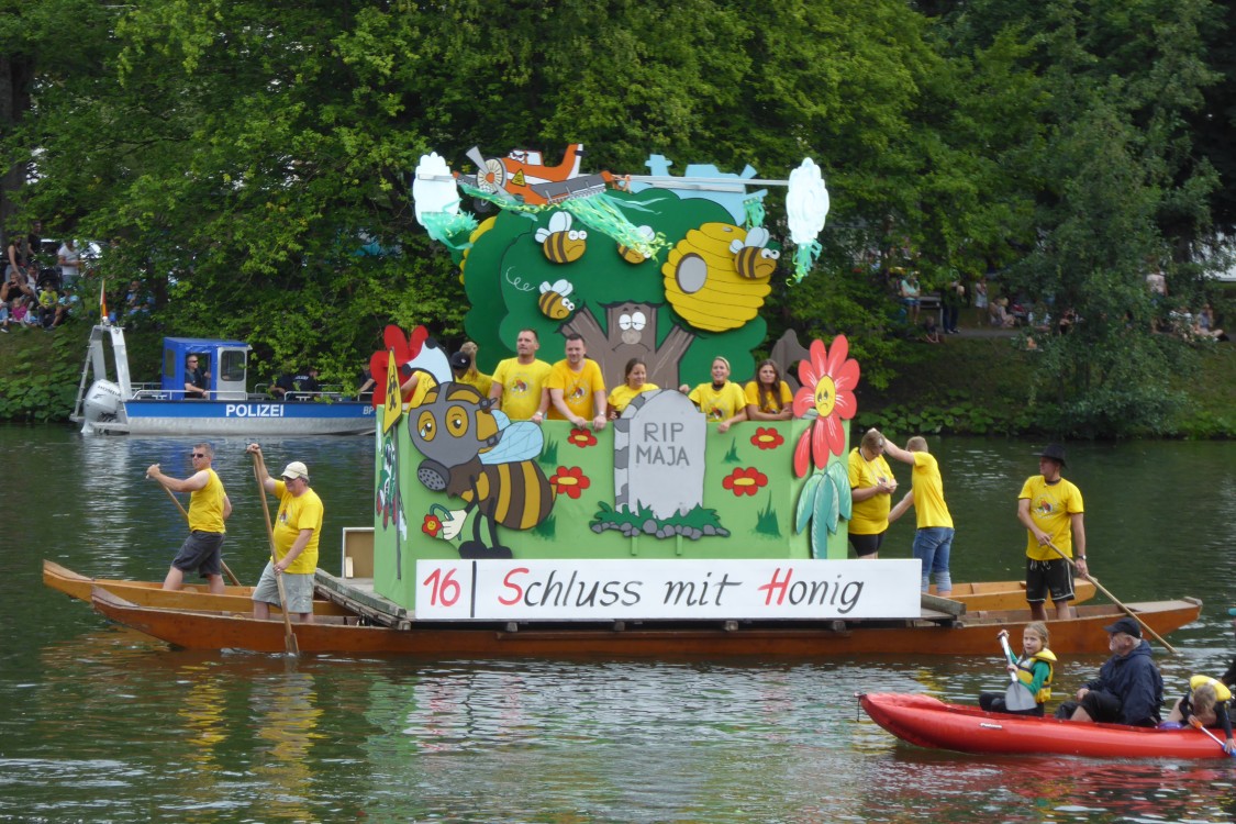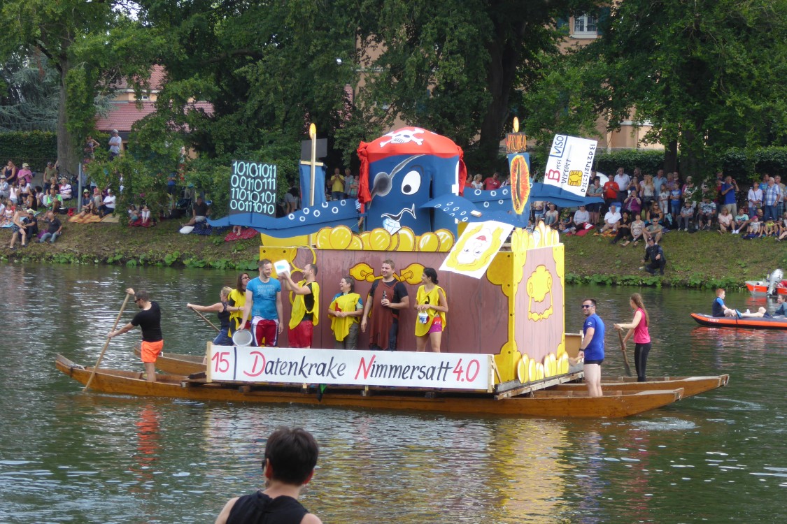 bunte Mischung13 aufwändig gestaltete Themenboote und viele originelle Beiträge so genannter wilder Nabader sind am 24. Juli 2018 auf der Donau unterwegs. |