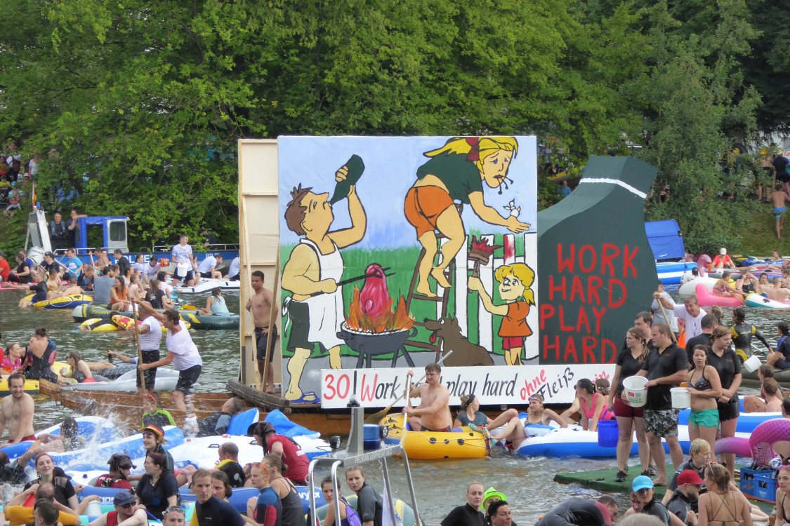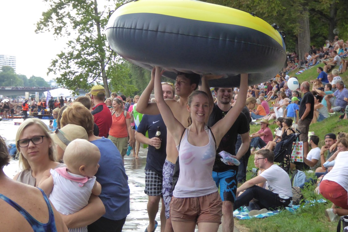 die WildenZu offiziellen Themenbooten gesellen sich die sogenannten wilden Nabader, unorganisiertes Treiben - alles ist unterwegs, was sich zum ausgelassenen "Hinunter-baden" auf der Donau eignet. |