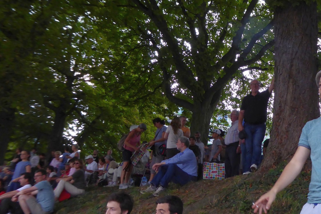 ZaungästeDie sicheren Zuschauerplätze sind ganz oben am Radweg. |
