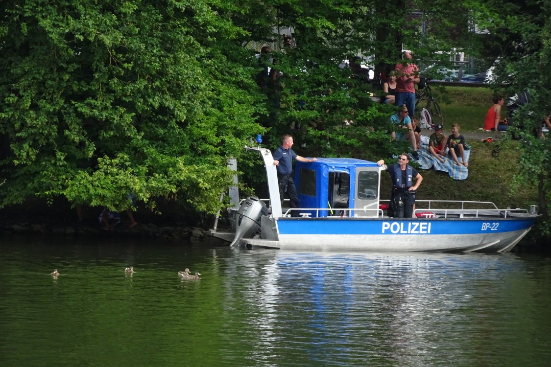 Helfer und Retter auf der DonauDLRG und DRK helfen bei den bei solchem Massenauflauf vorkommenden Unfällen und Unwohlsein. Applaus! |