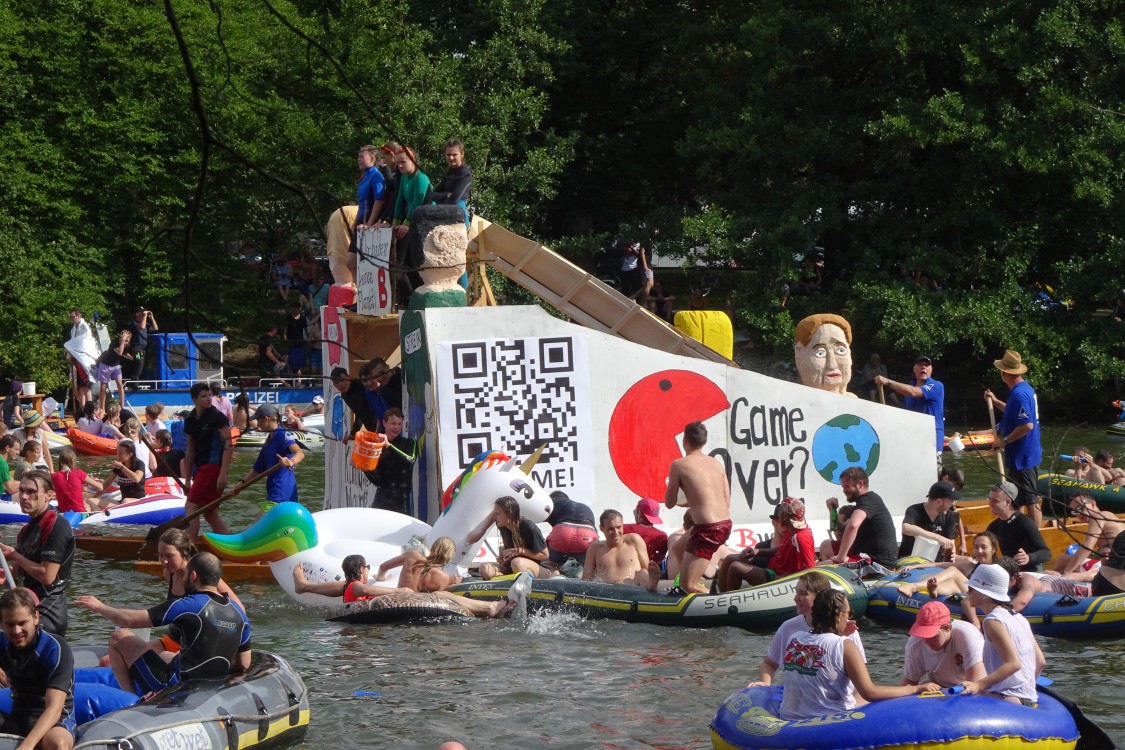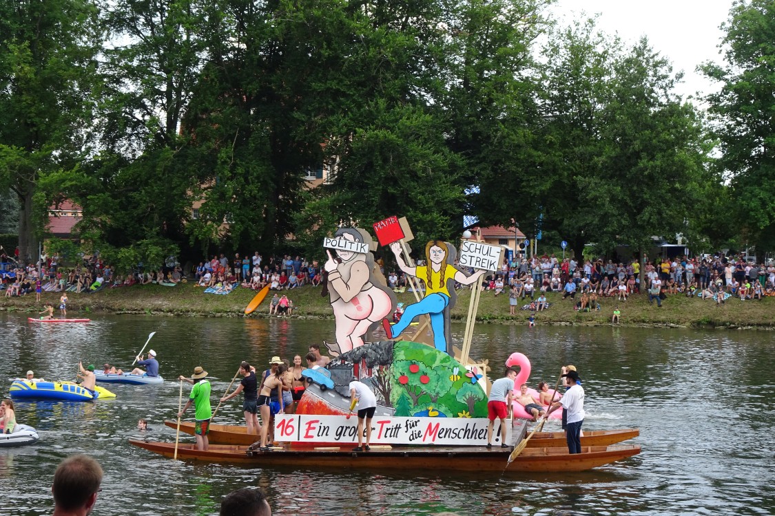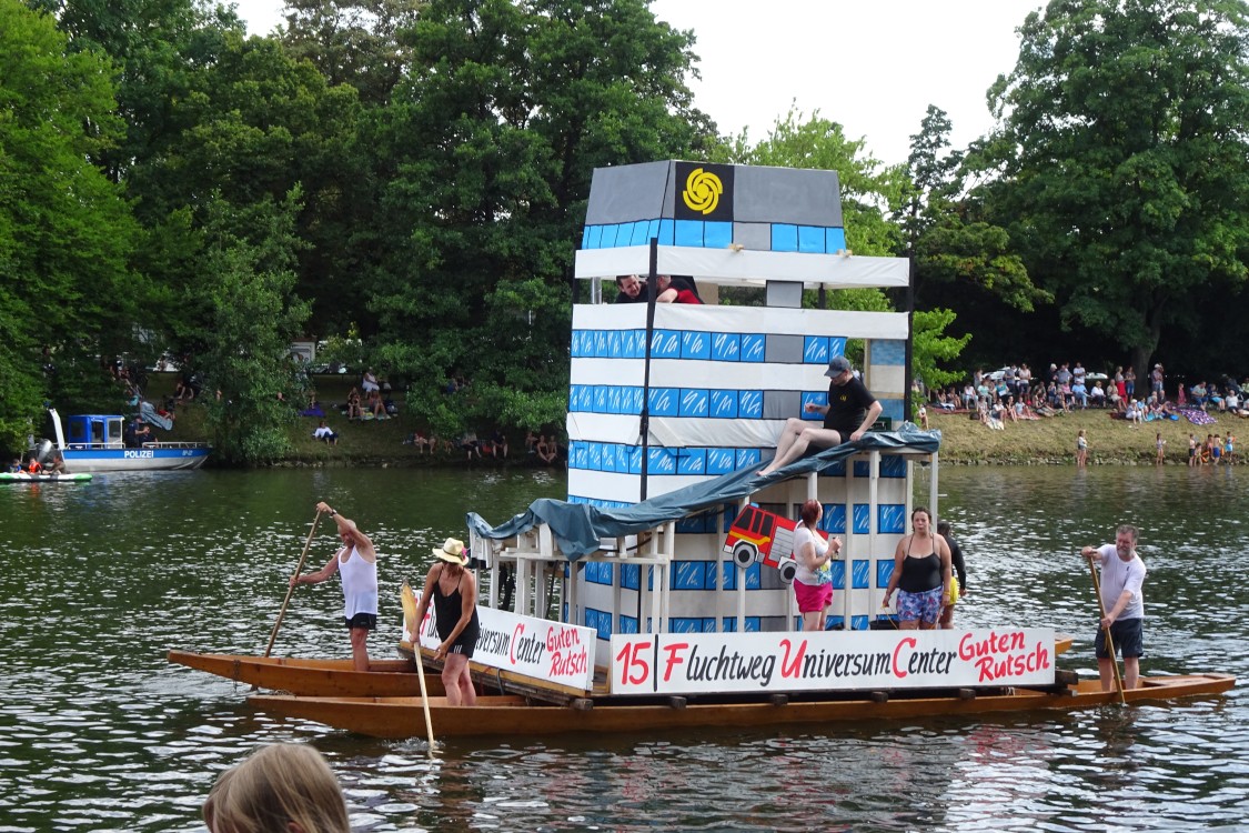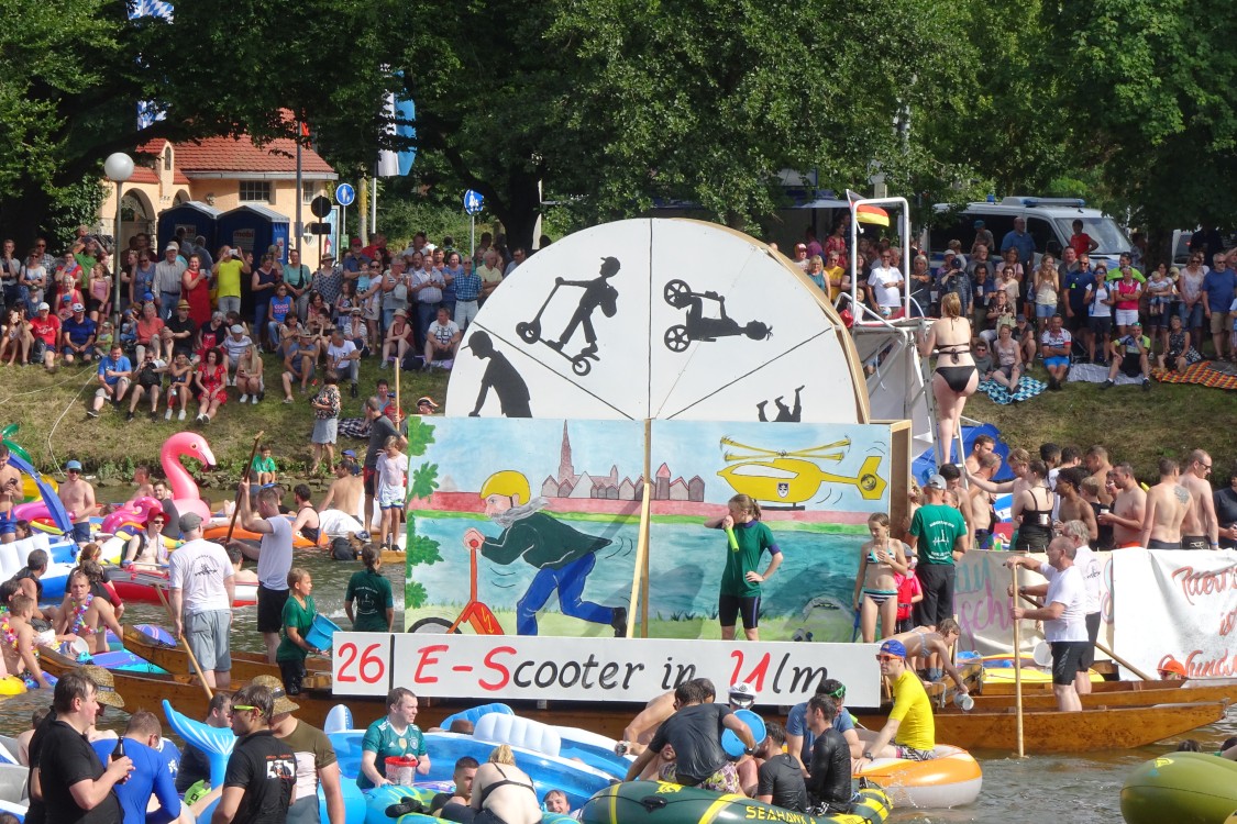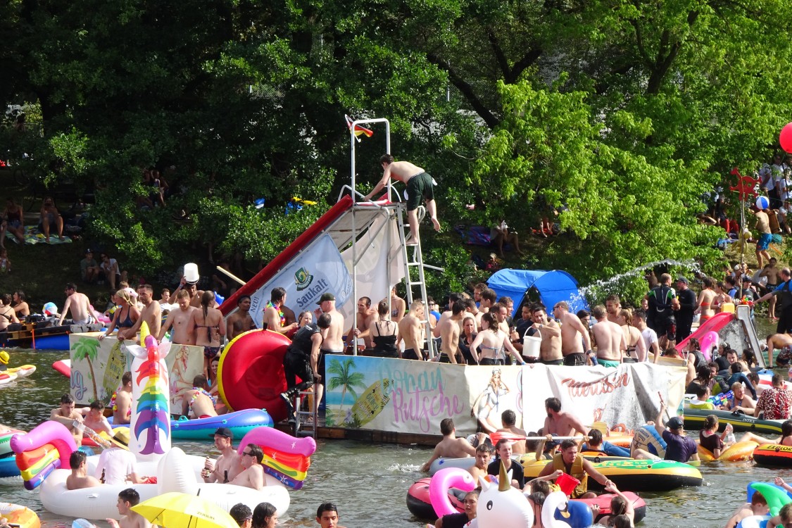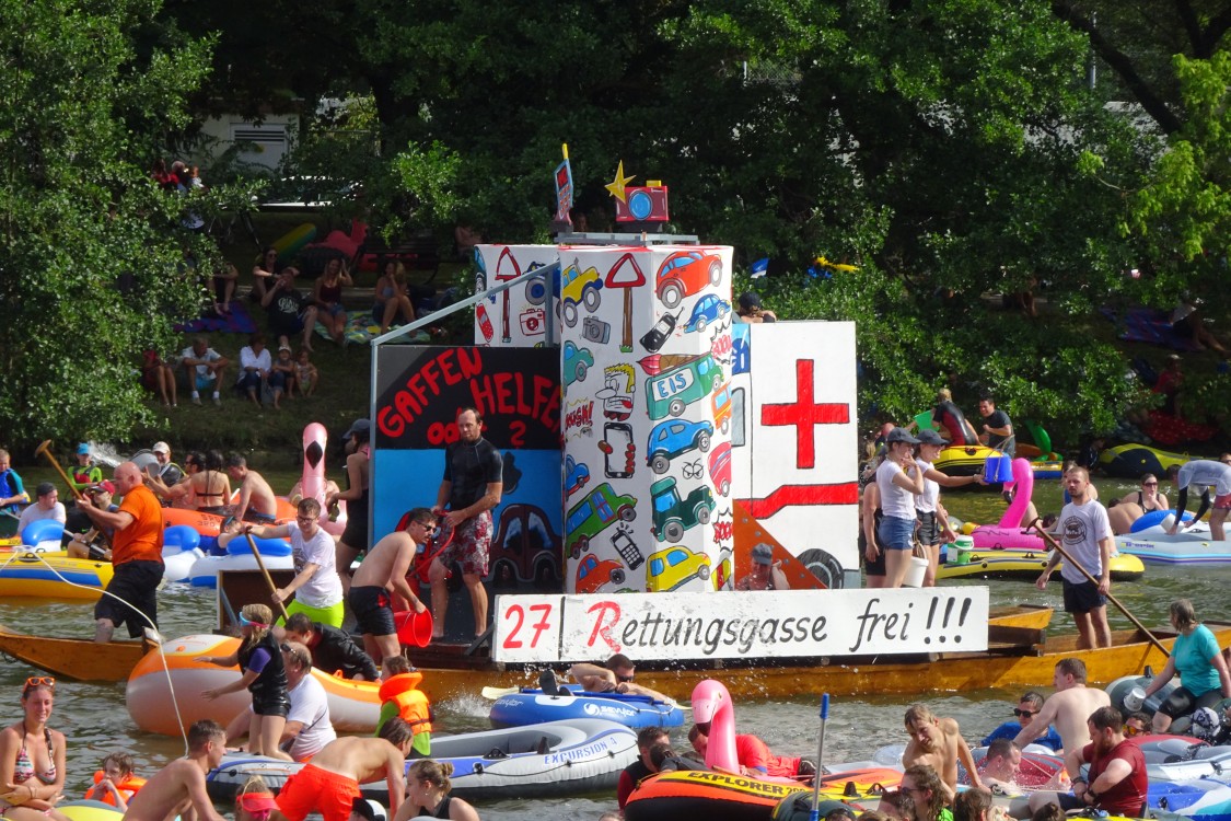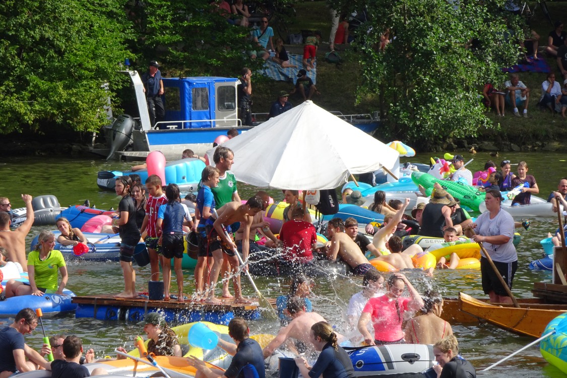 DonaurutscheViele Rutschen waren schwimmend unterwegs und boten für Akteure und Zuschauer Spaß. |