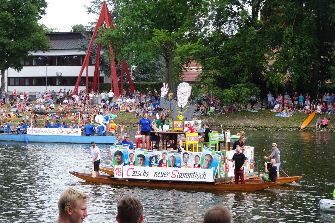 Nach alter Tradition wird in Ulm am Schwörmontag, dem vorletzten Montag im Juli, das Nabada, der lokale "Nationalfeiertag", ausgiebig gefeiert.