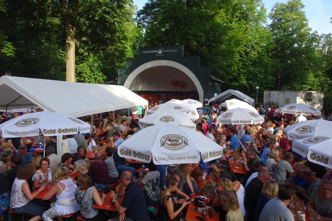 SalsaklängeNach dem Nabada werden in der Friedrichsau die Biergärten und Wiesen belagert, und die Musikdarbietungen genossen. Auf der Gänsewiese ist die Bühne mit Salsaklängen und spontanen Tänzern davor beliebt.Mehr Bilder gibt's beim |