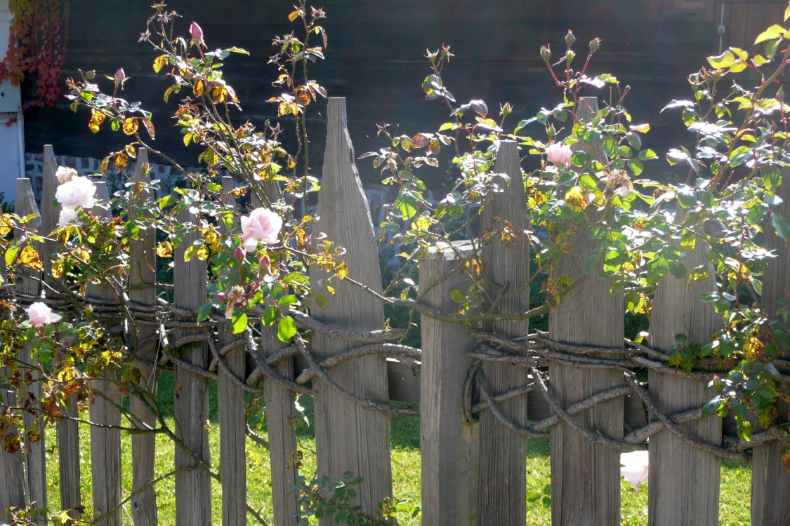 ZaunEine Konstruktion ohne Nägel und Draht - nur mit Fichtenruten gebunden. |