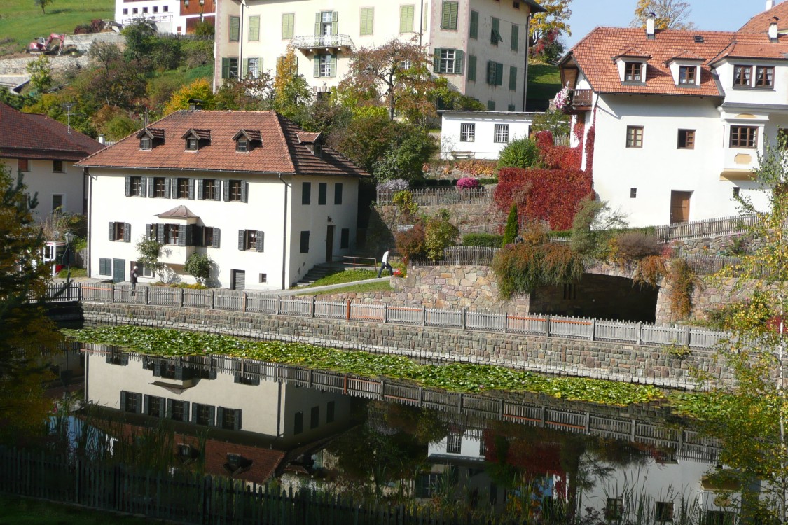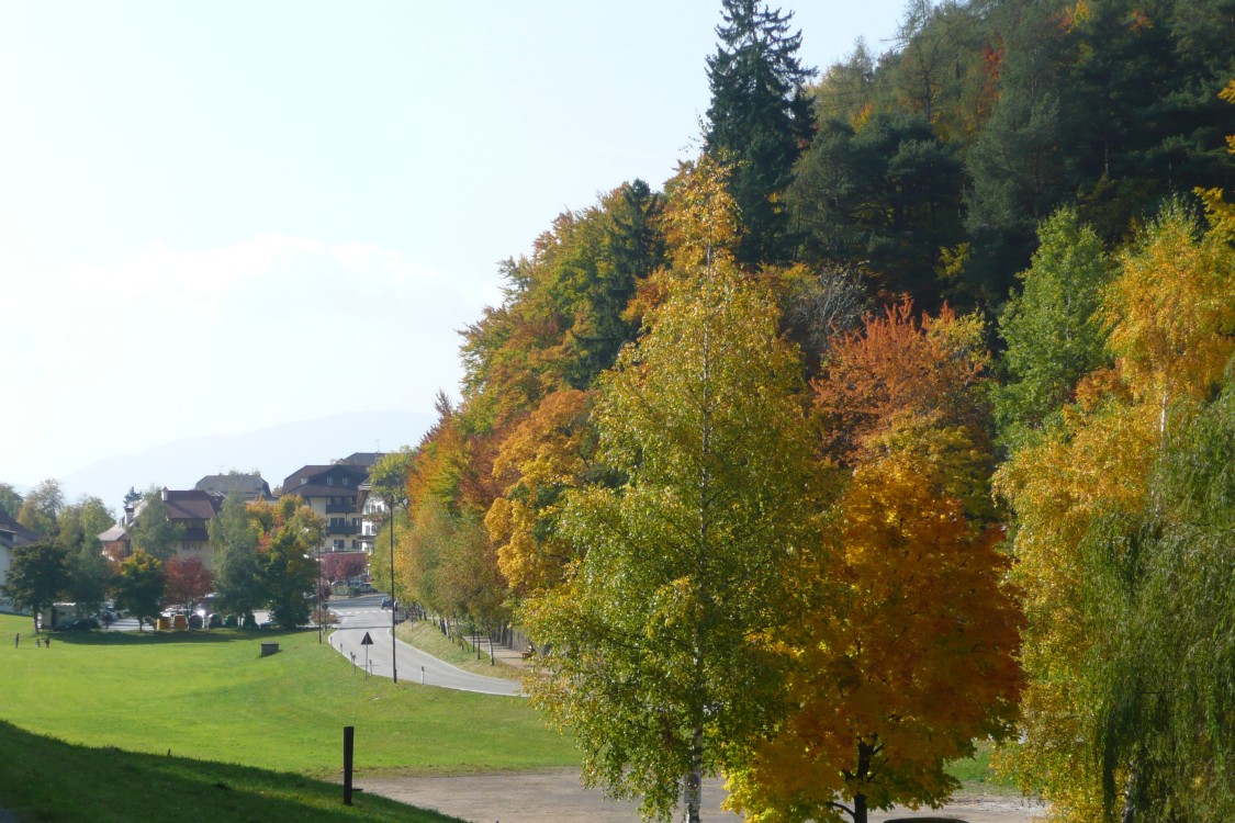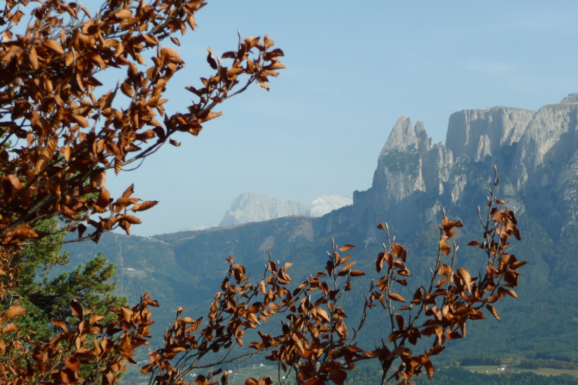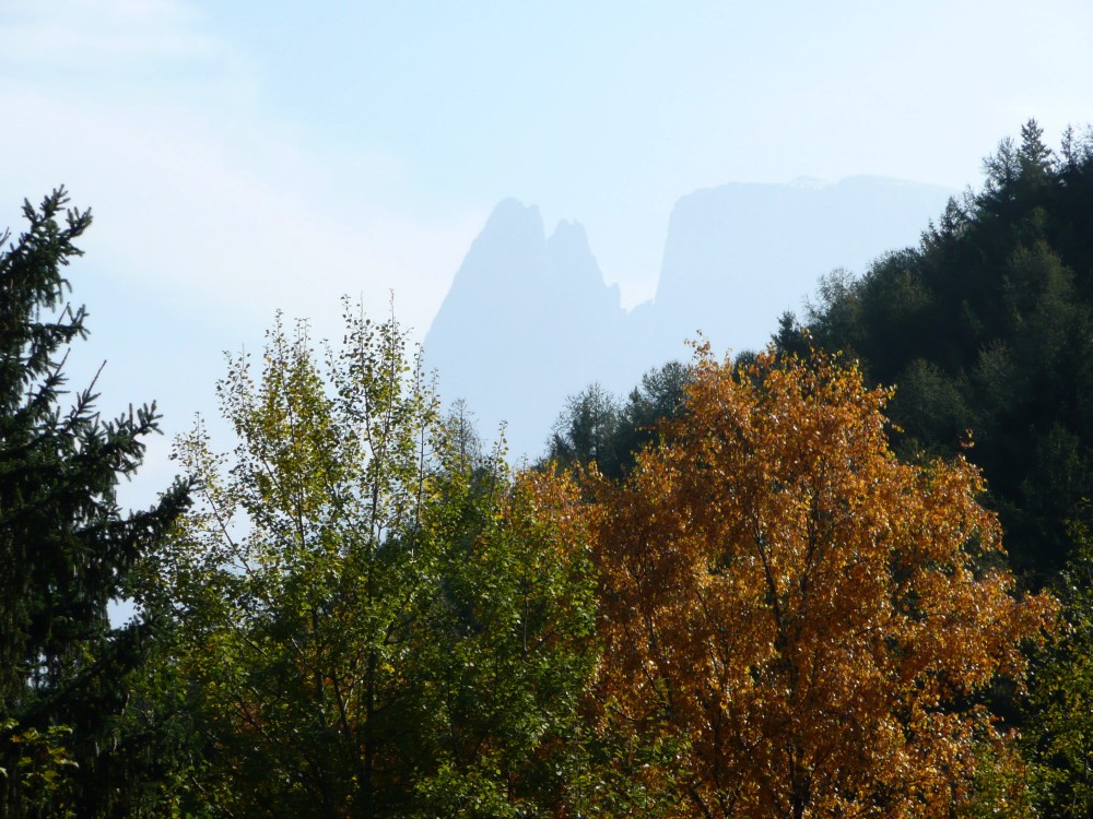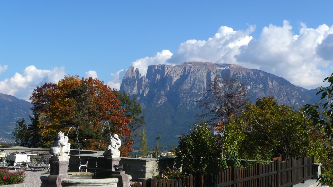 Bemelmans PostVom Park des Hotels Bemelsmans Post hat man einen schönen Blick auf den Schlern. Der Schlern liegt östlich von Bozen. |