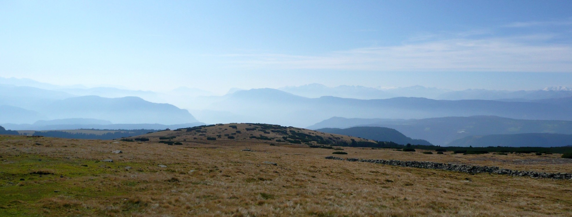 LuftverkehrSpuren vom Luftverkehr über dem Rittner Horn.Frei interpretiert nach: "wir machen den Weg ..." Panoramaweg: Der Rundblick ist phantastisch schön ... |
