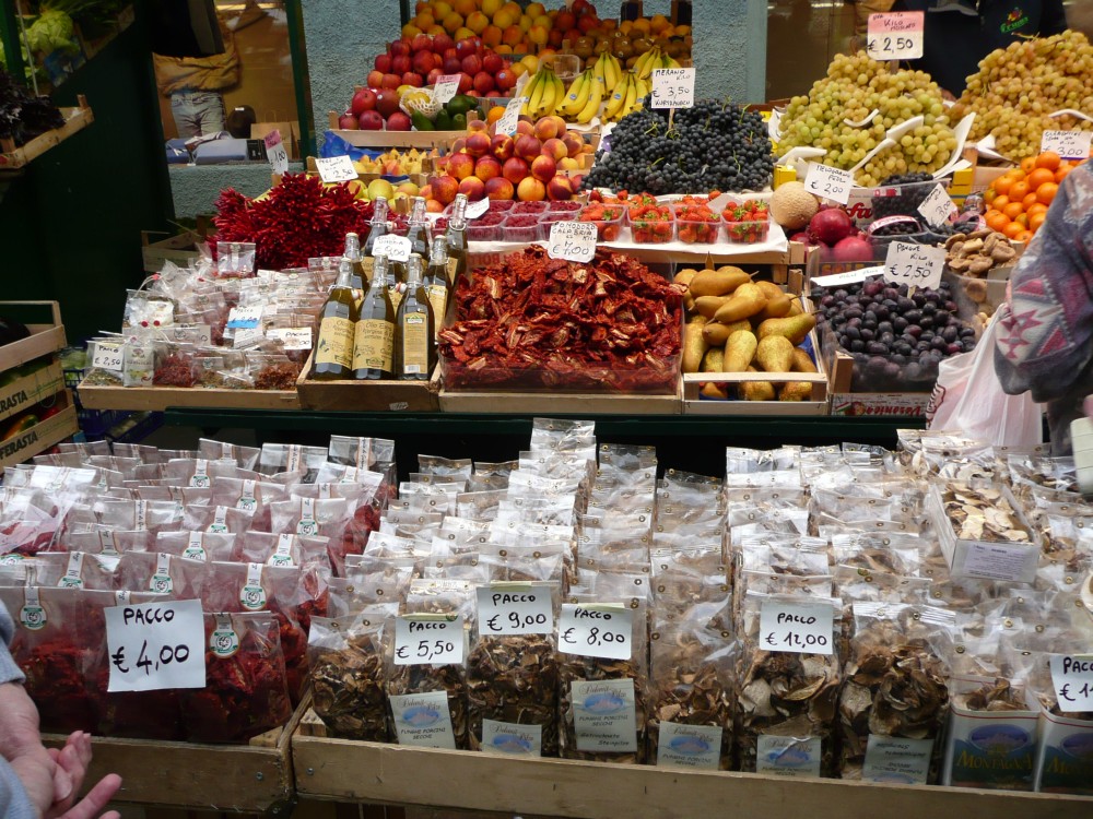 MarktstandGetrocknete Pilze oder Tomaten, erntefrische Beeren und Obst ... |