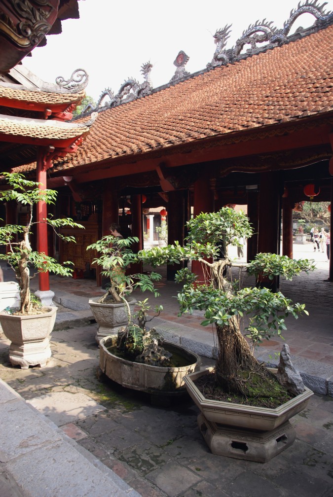 LiteraturtempelDurch alle Tore und Höfe im Heiligtum des Konfuzius angelangt. Wunderschöne Bonsai-Bäume schmücken diesen letzten Innenhof. |