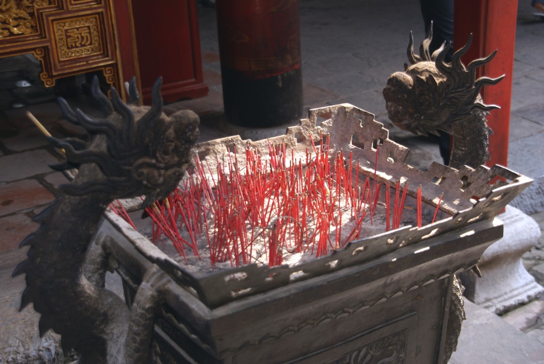 RäucherstäbchenStimmungsvoll und oft gesehen - der Geruch der Räucherstäbchen erfüllt jede Pagode, wie auch hier im Heiligtum des Literaturtempels. |
