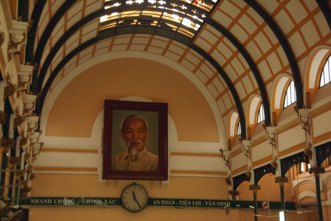 Post InnenhalleHo-Chi-Minh wacht über die Halle des Hauptpostamtes... |